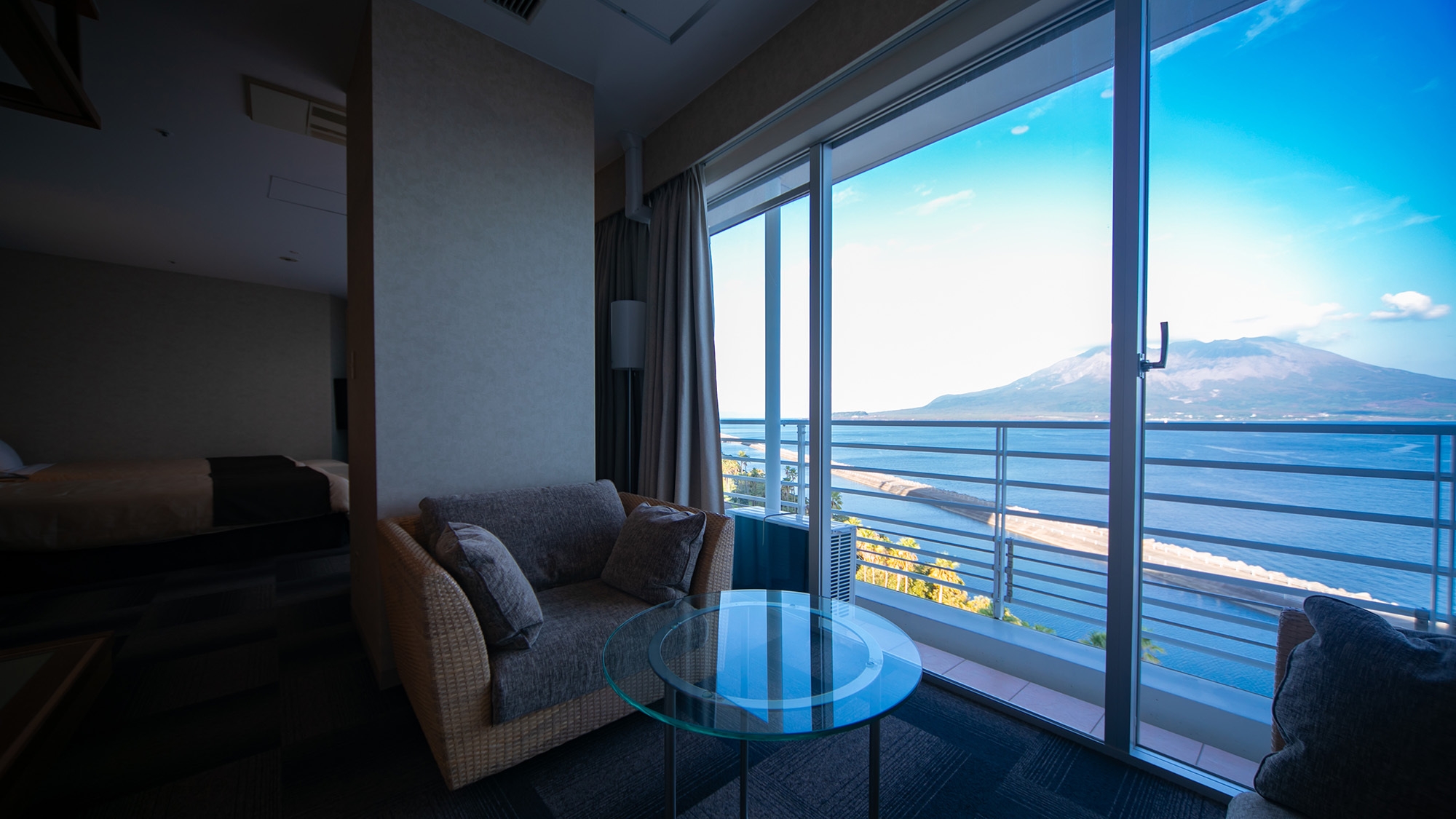 碧くきらめく海と、雄大な桜島を望む、唯一無二の眺望。