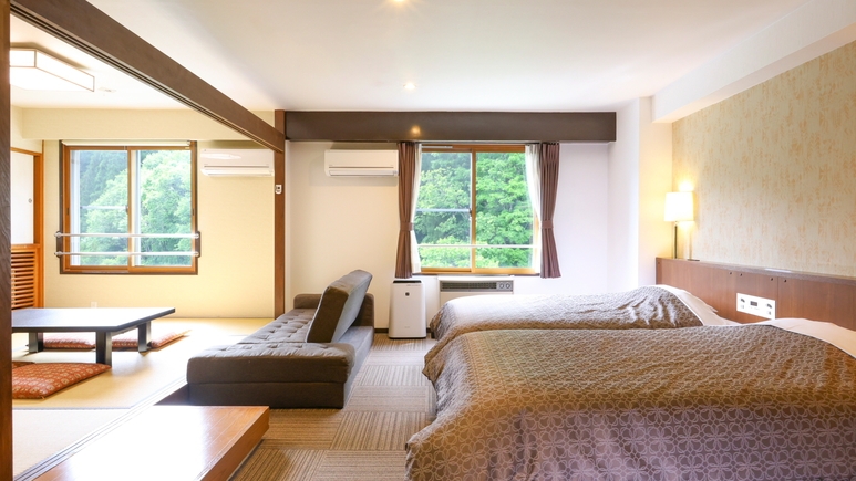 静かに佇む森側のお部屋です※北アルプスの眺望はございません※■約40平米■バス・トイレ・洗面は独立型■ベッド幅115cm×2台 ソファーベッド1台 お布団2組
