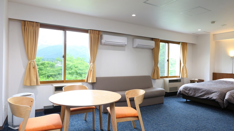北アルプス連峰を一望する、「特等席」のお部屋へようこそ■約20平米■ユニットバス(温水自動洗浄トイレ付)■ベッド幅100cm×2台 ソファーベッド1台