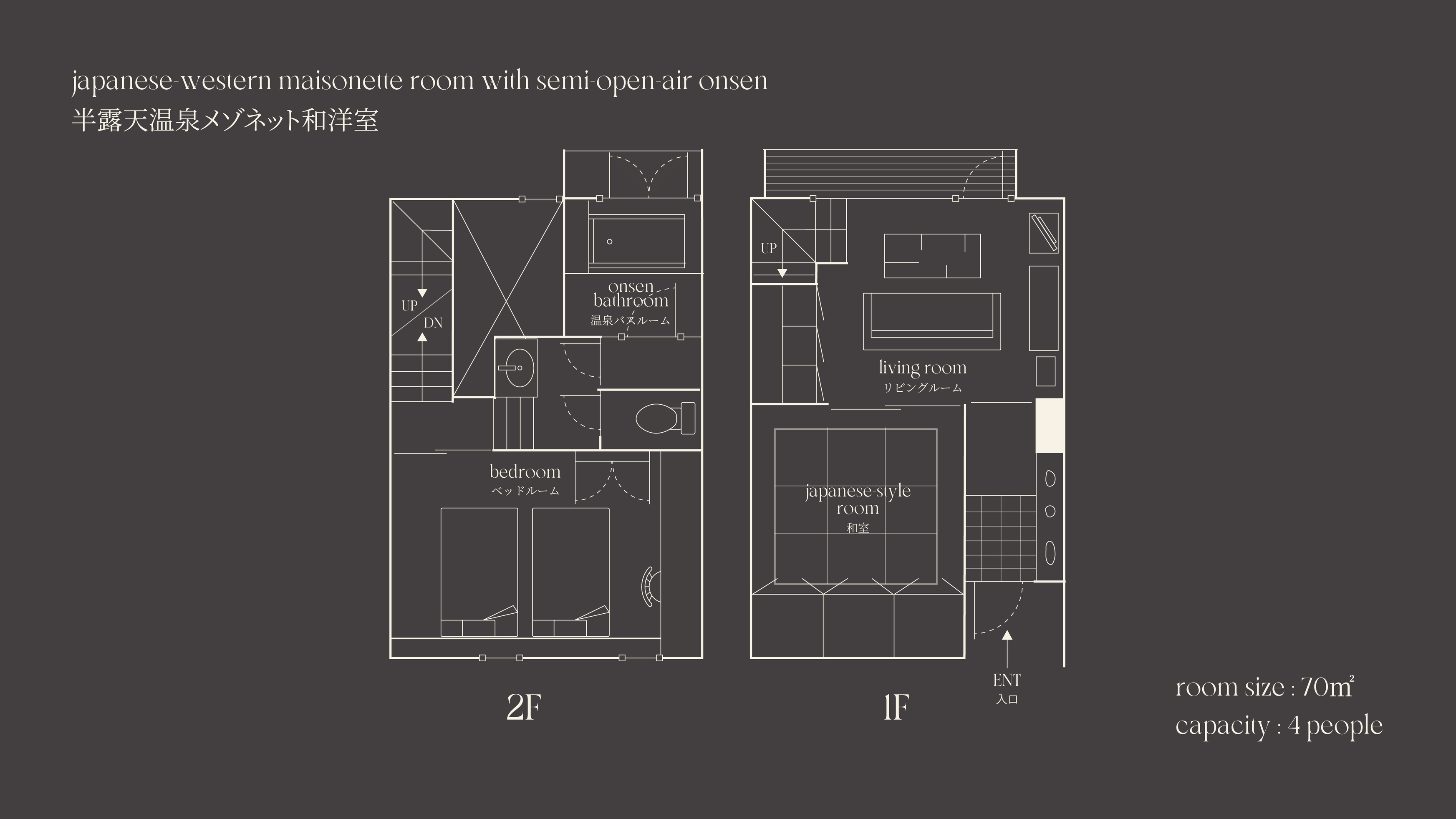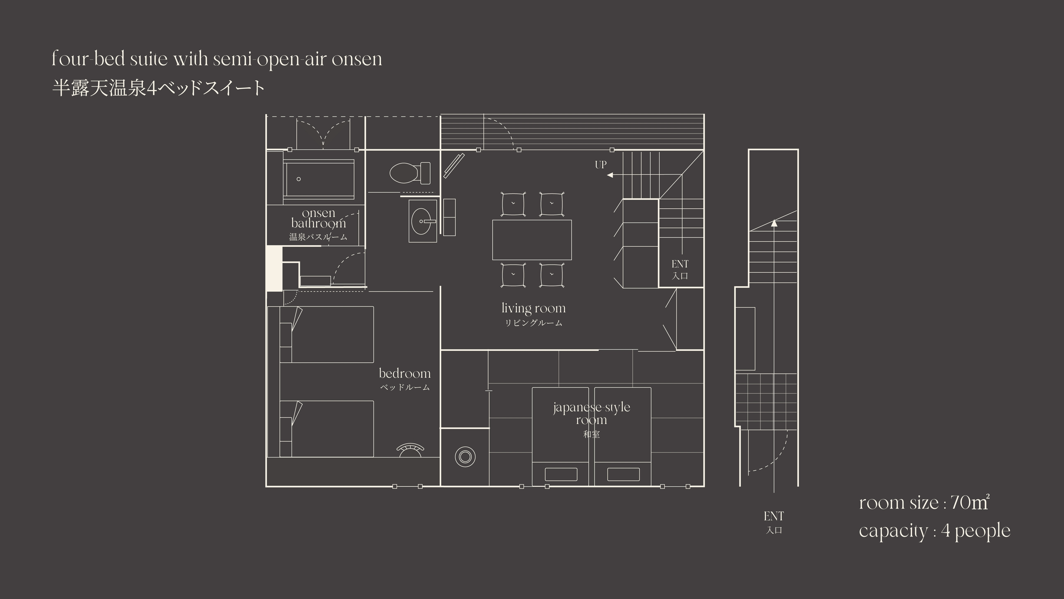 【幼児添い寝不可|メゾネット階段あり】|ベッドsize:幅1200mm×縦1950mm|3-4名様ご利用時、エキストラベッドまたはお布団をご用意いたします。