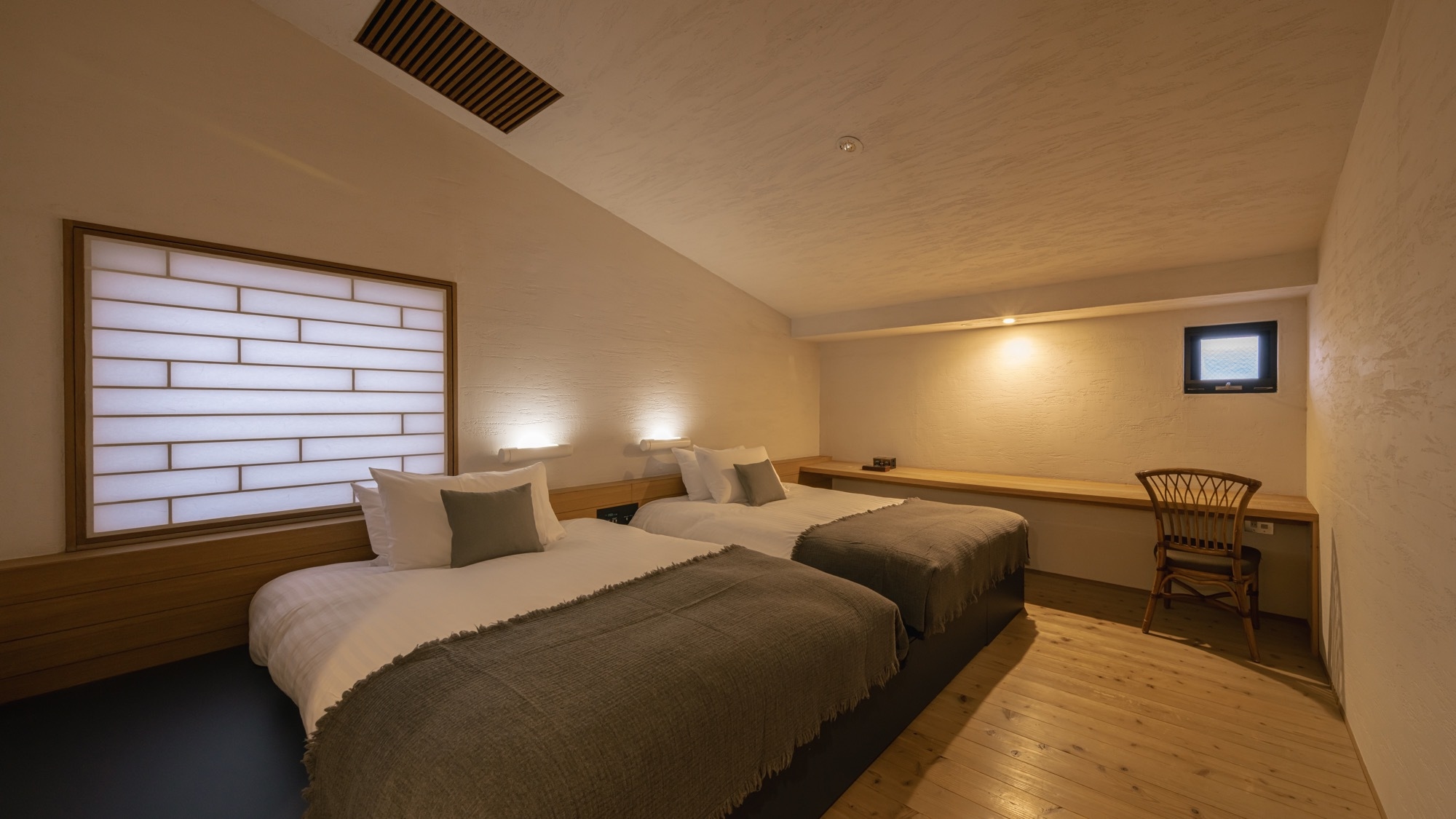 【幼児添い寝不可|メゾネット階段あり】ベッドsize:幅1200mm×縦1950mm|3-4名様ご利用時、和室にお布団をご用意いたします。