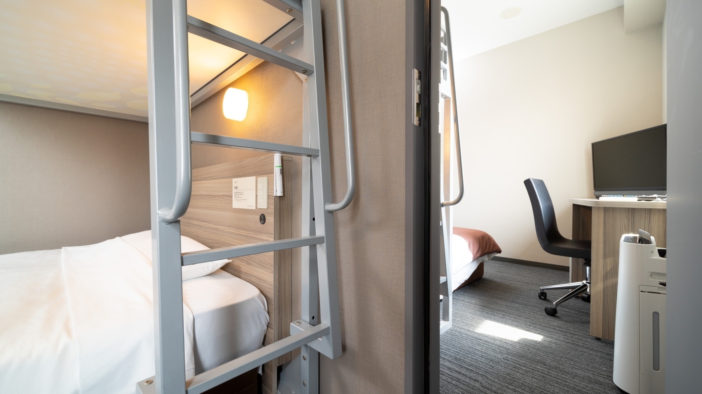 ■定員:1名〜4名 ■セミダブルベッドが2台+ロフトベッドが1台 ■ファミリールームは1フロアに1室となります。同じフロアにて2室以上でのご用意はできかねます。
