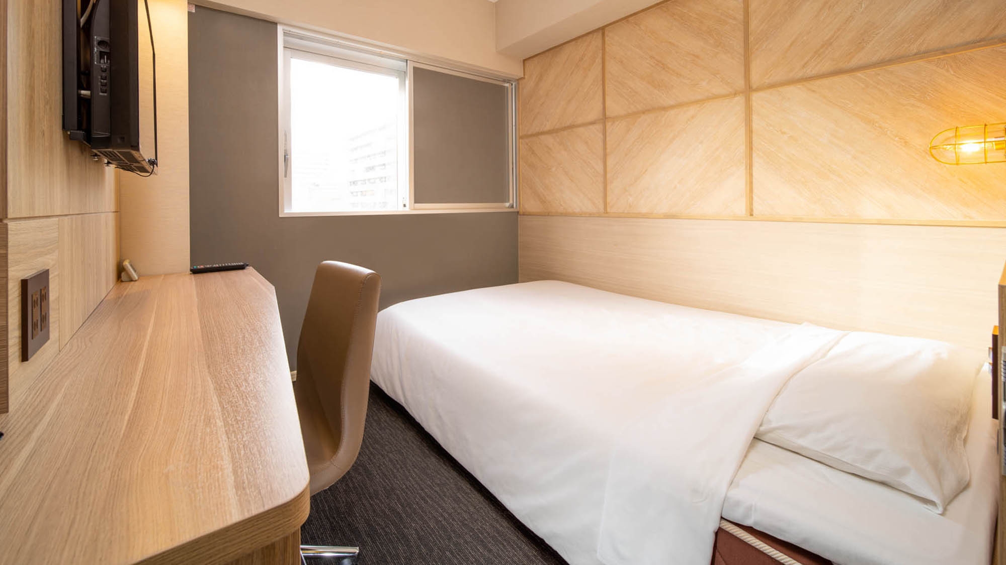 140cm幅のワイドベッド+広々デスクの【エクストラルーム】です。 広々デスクで仕事や作業がしやすいお部屋です。
