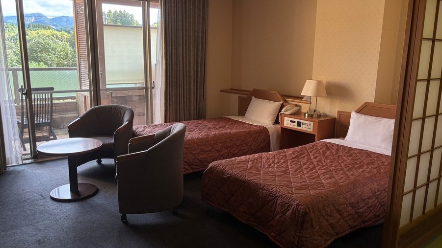 セミダブルベッドを2台備えたツインルームです。※畳敷きにツインベッドの和洋室タイプになる場合もございます(選択不可)。