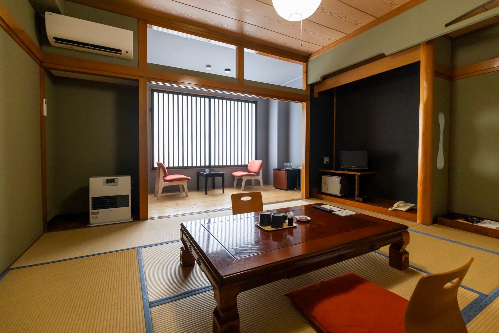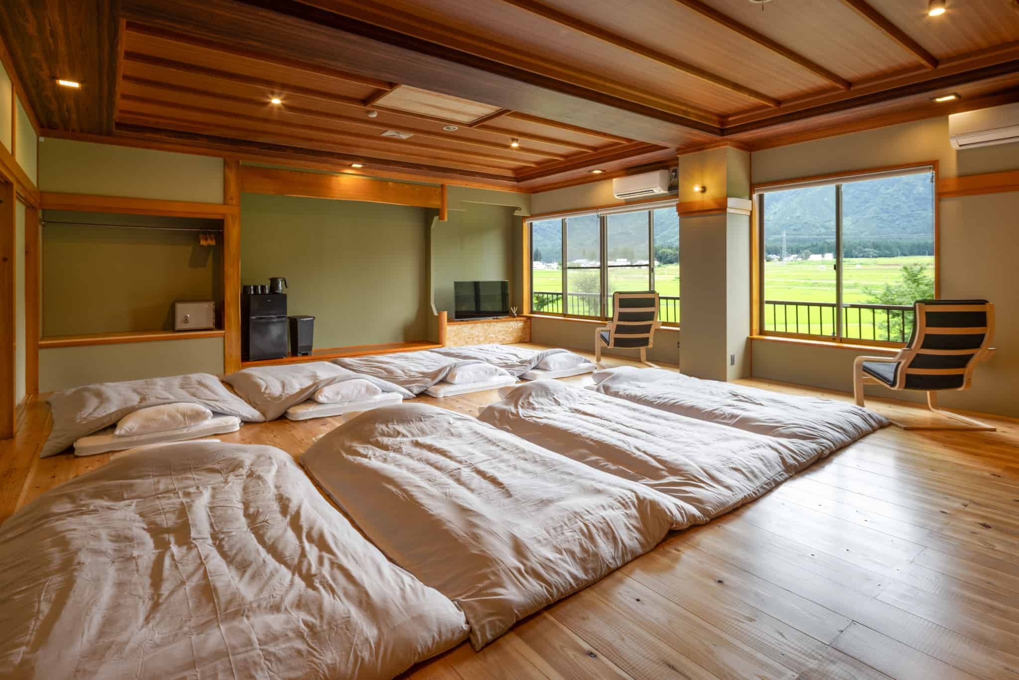 洋室にお布団が最大12枚敷ける広々としたお部屋。ファミリーやグループにおすすめ!★全室Wi-Fi 無料で使用可能です★トイレは共用です