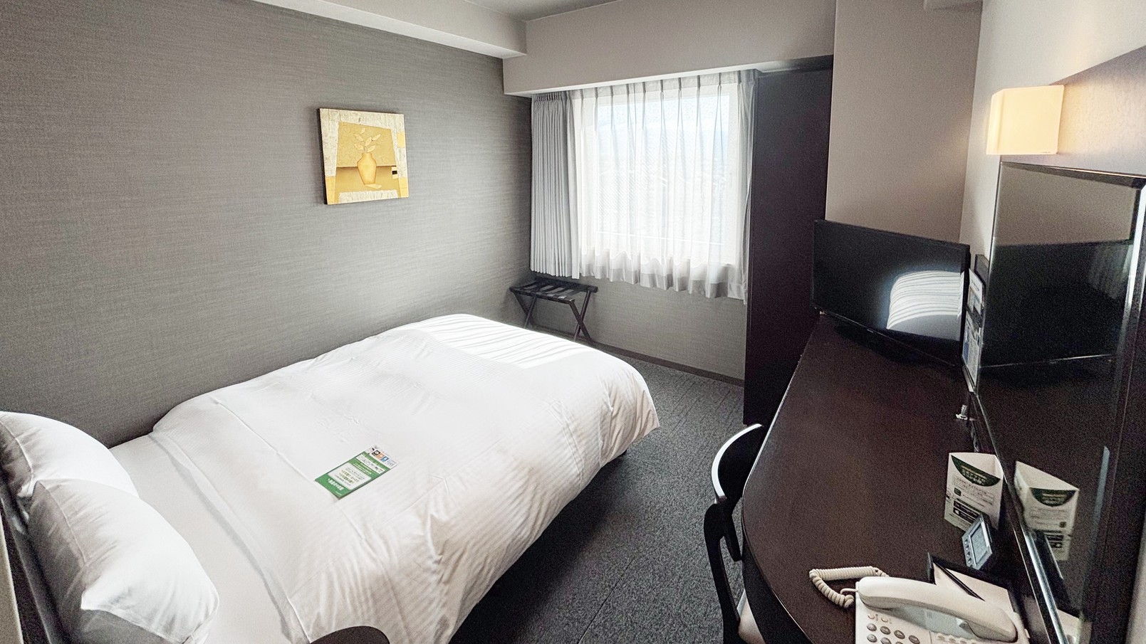 こちらのお部屋では通常の紙巻きたばこはご利用いただけません。WOWOW無料視聴、ベッド140×196(cm)、32型液晶TV・加湿機能付き空気清浄機設置
