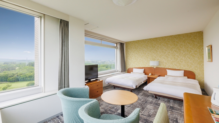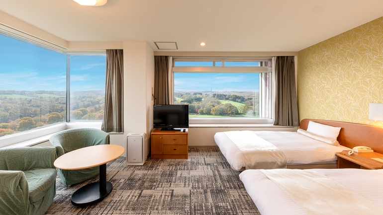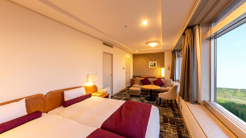 【2024年改装】上層階客室/ワイドシングル(110cm幅)×2台・ソファベッド×1台/リビングスペース有/36平米/ユニットバス・洗浄機付きトイレ付