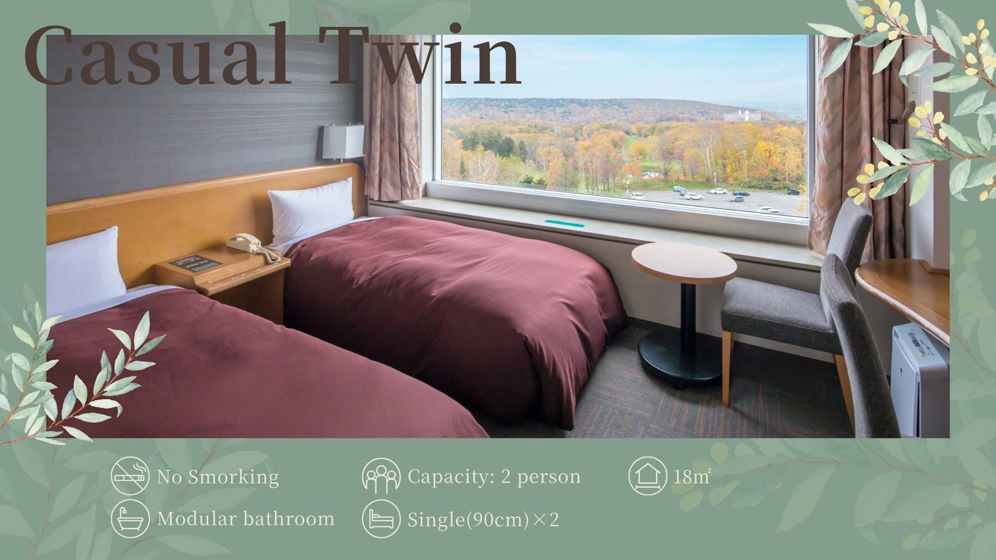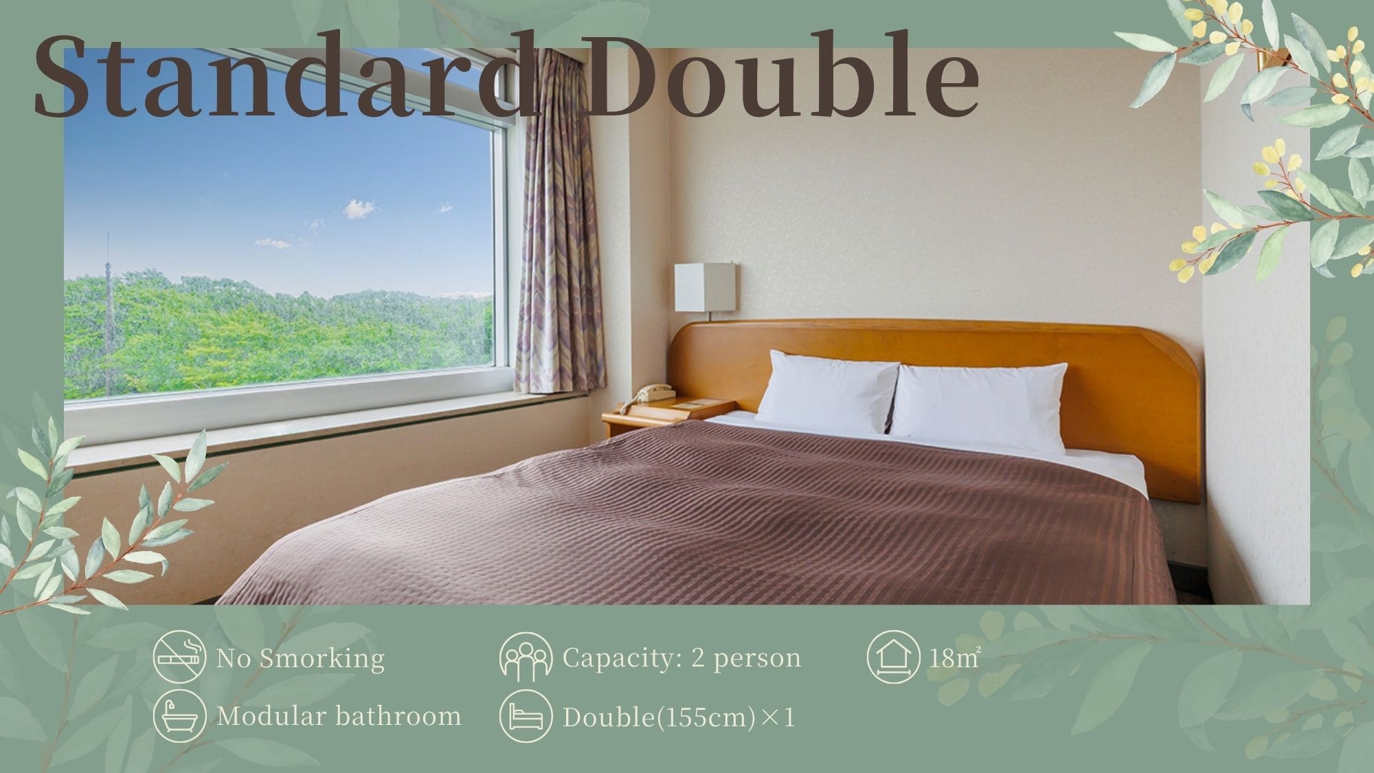 ベッド幅155×210cm◆無線LAN完備(無料)◆浴衣・スリッパ有◆状況により18平米スマートツインのシングルユースになる場合有※ご指定不可