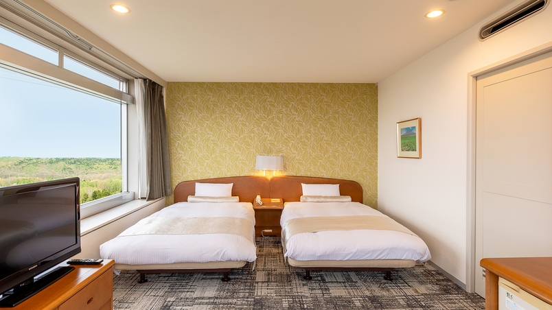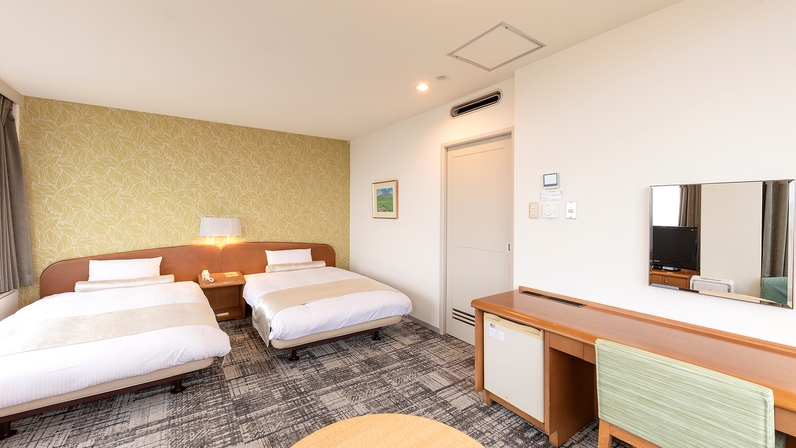 ◆落ち着いて過ごせる角部屋 ◆ベッド幅125×200×2台 ◆無線LAN完備(無料) ◆浴衣・スリッパ有
