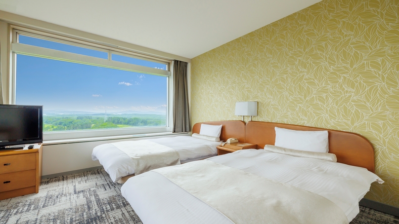 ◆高層階10階 ◆ベッド幅110×195cm×2台 ◆フローリング ◆無線LAN完備(無料) ◆浴衣・スリッパ有※3名様でご利用の場合、お一人はソファベッドとな