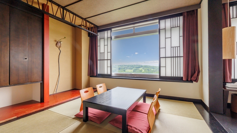 ◆デラックス和室(約47平米) ◆6階、ゴルフ場・スキー場側 ◆無線LAN完備(無料) ◆浴衣・スリッパ有
