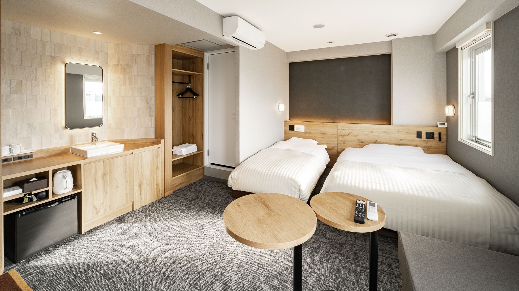 定員4名までお泊りいただける【ツインルーム】です。 ベッドが3つ(幅150cm+90cm+ソファベッド)あるお部屋で、お友達同士などにお勧めです。