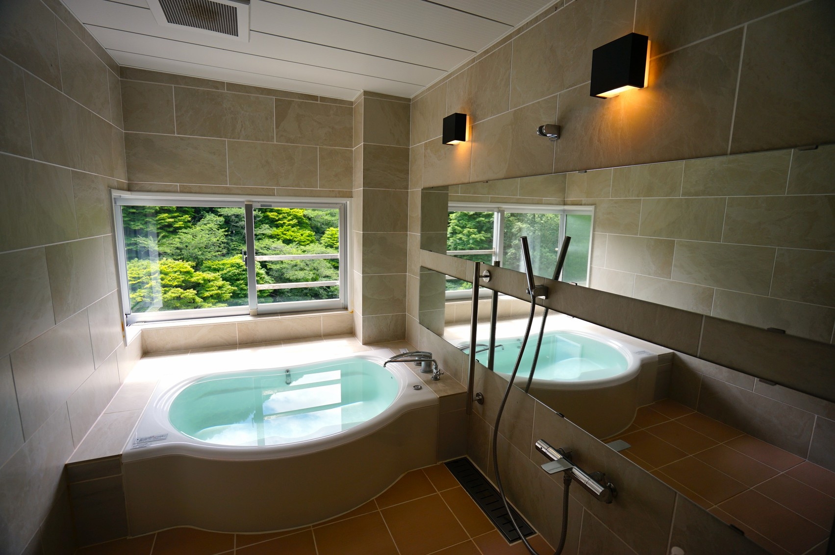 美人の湯を満喫できる「源泉内風呂」を備えた特別室。大人数での旅行でも広々快適にお過ごし頂ける室数限定の特別室。 ※3名以下でご利用の場合2名様はベッドでご用意