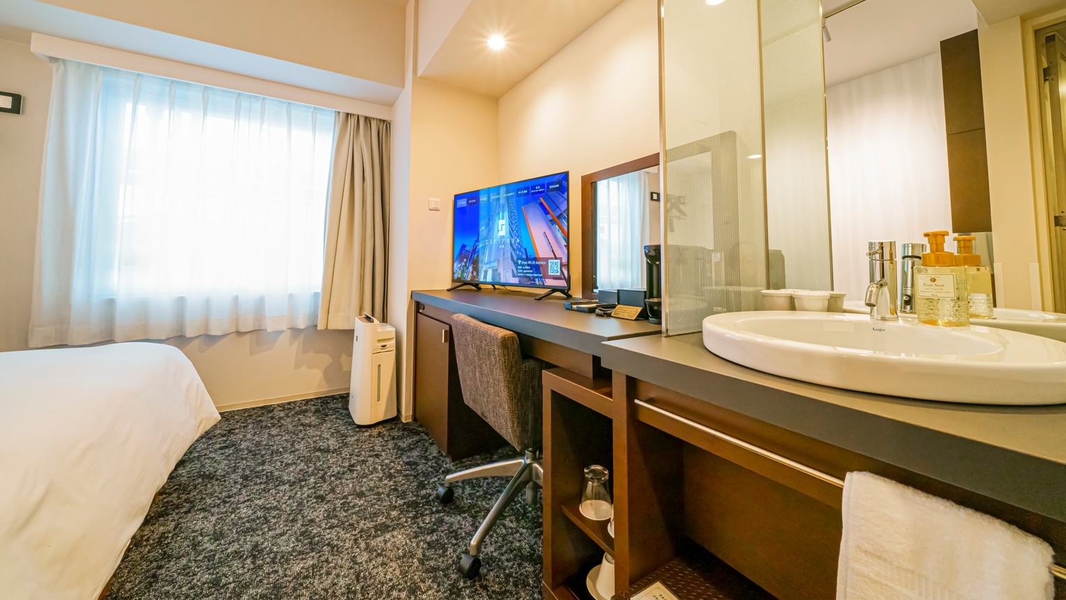 ダブルベッド(140cm幅)・バスルーム、トイレが別々に設置・液晶TV(32インチ)・VOD(有料)・LAN回線(無料)