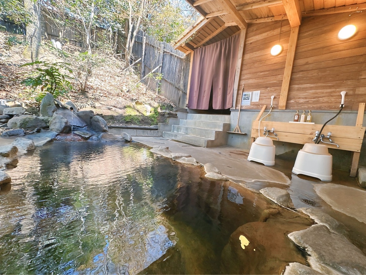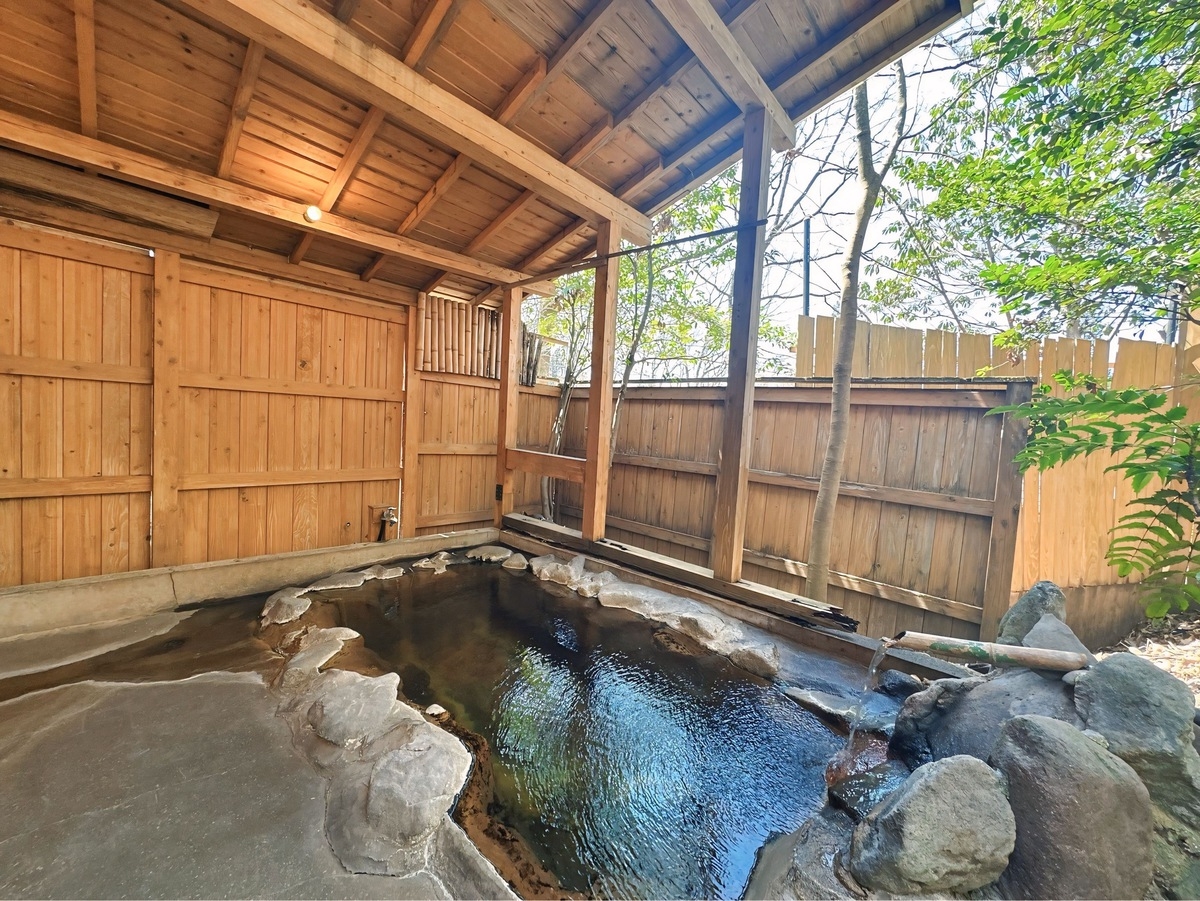 客室専用岩風呂露天で源泉掛け流し天然温泉です。