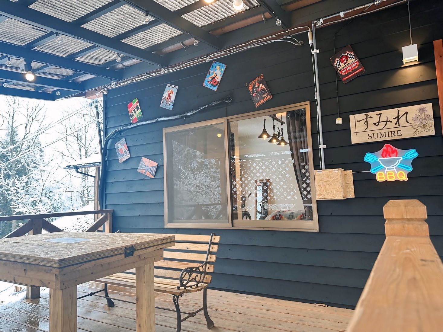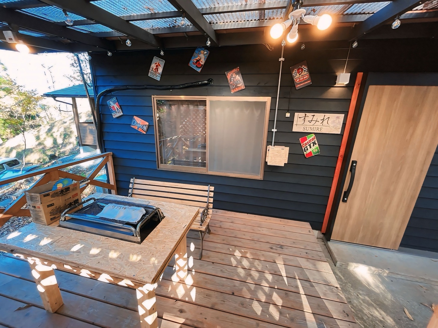 【おしゃれで雰囲気のあるBBQ専用テラス付き!屋根があるから雨で大丈夫】