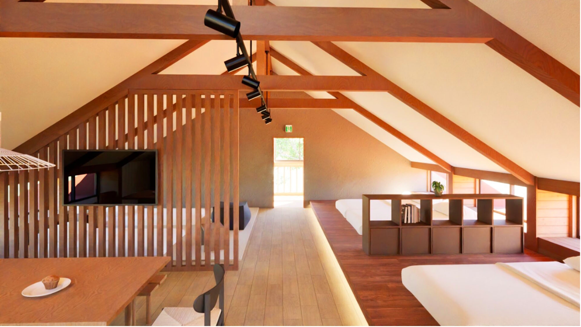 コテージ【こうめ】は和室8畳のリビングと10畳ロフト寝室のコテージ。