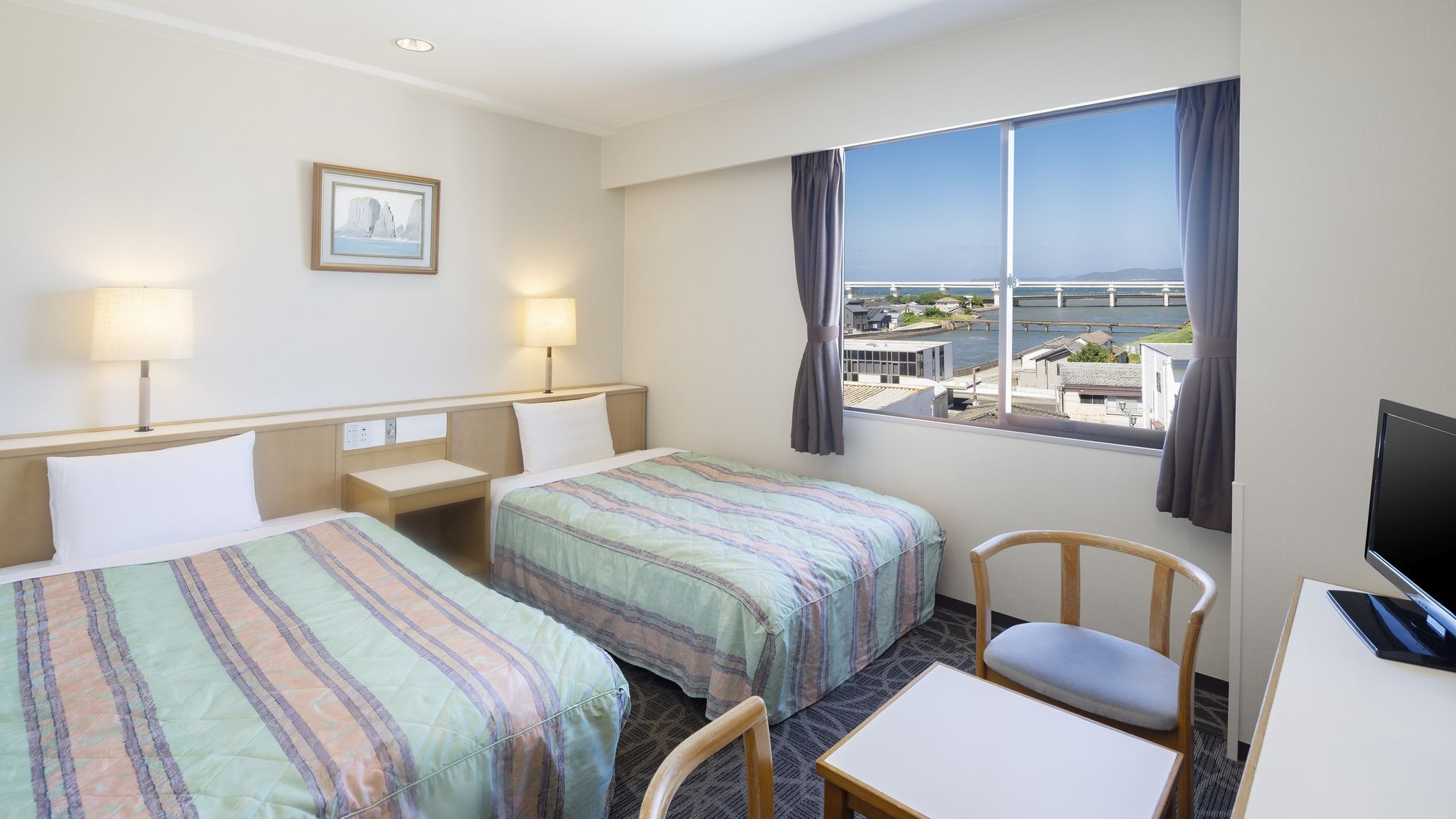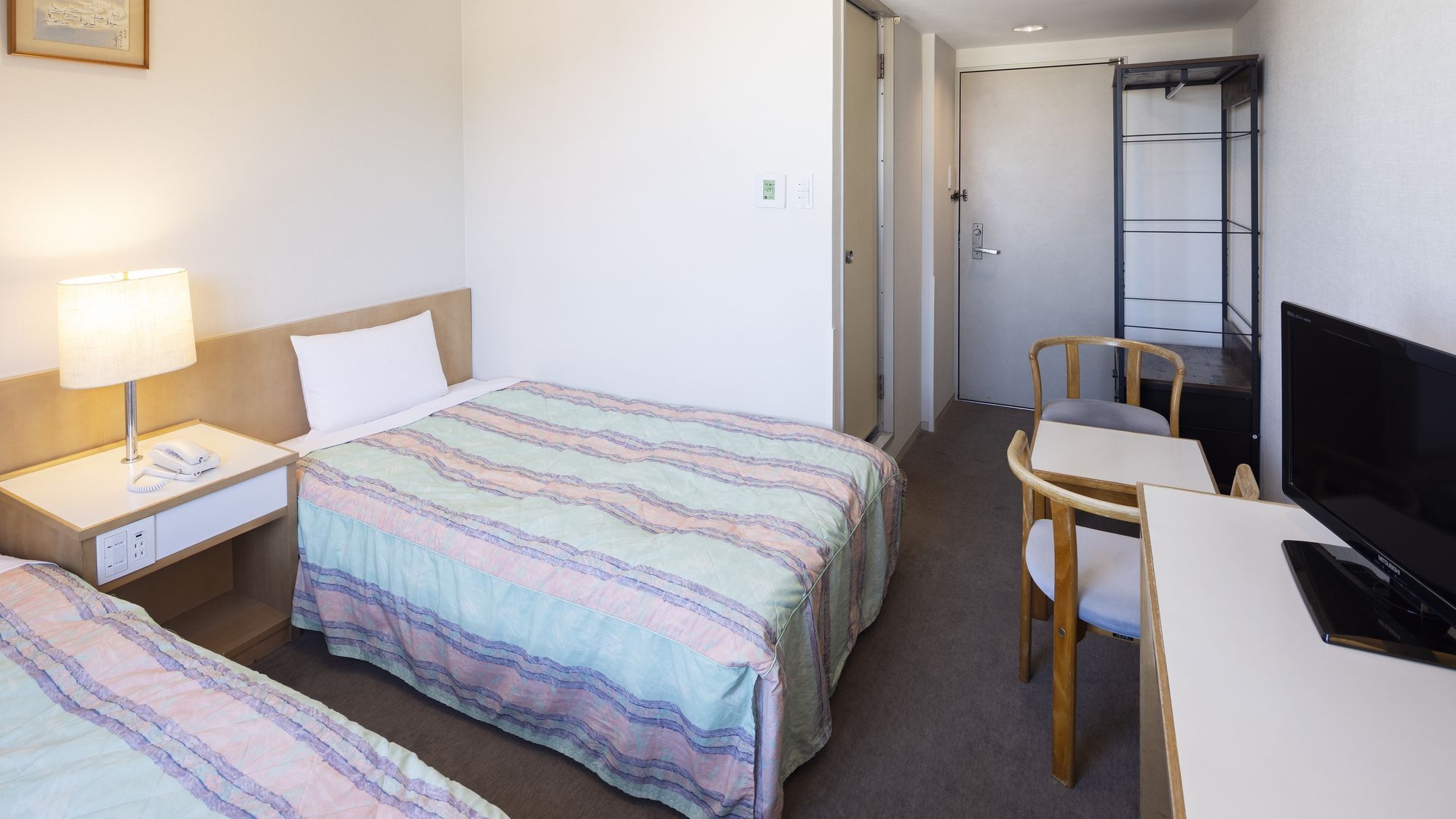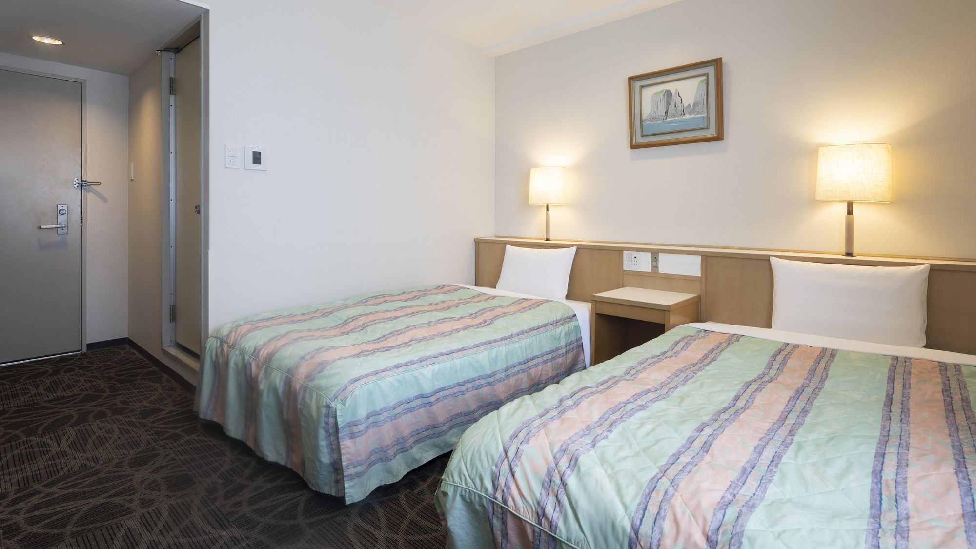 広さ:20平米/幅110cmのベッド2台を備えたお部屋です。全室Wi-Fi完備/VOD視聴無料/バス・トイレ完備