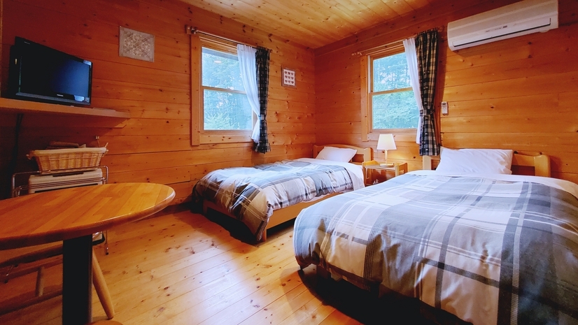 J-HOUSE自慢のログハウス。グループ・ご家族でのご利用に。7名様以上で貸切にできます。【テレビ・エアコン付】