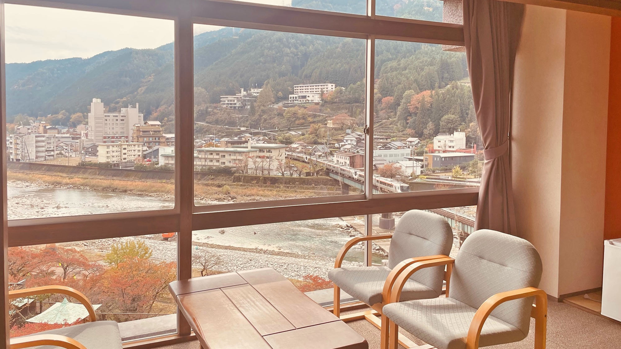 飛騨川や山々の景色を眺めお過ごしください。