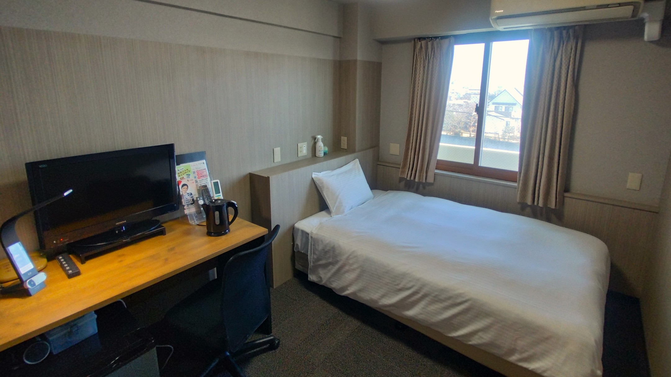 シーリー社製140センチ幅のベッド・エアウィーヴマットレス使用・Wifi完備・個別空調採用・空気清浄機完備※禁煙室のため喫煙者の方のご予約はご遠慮ください