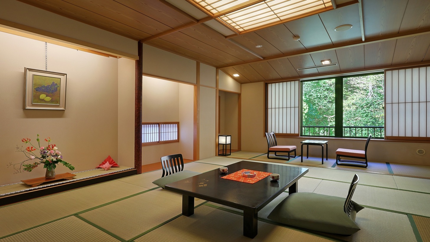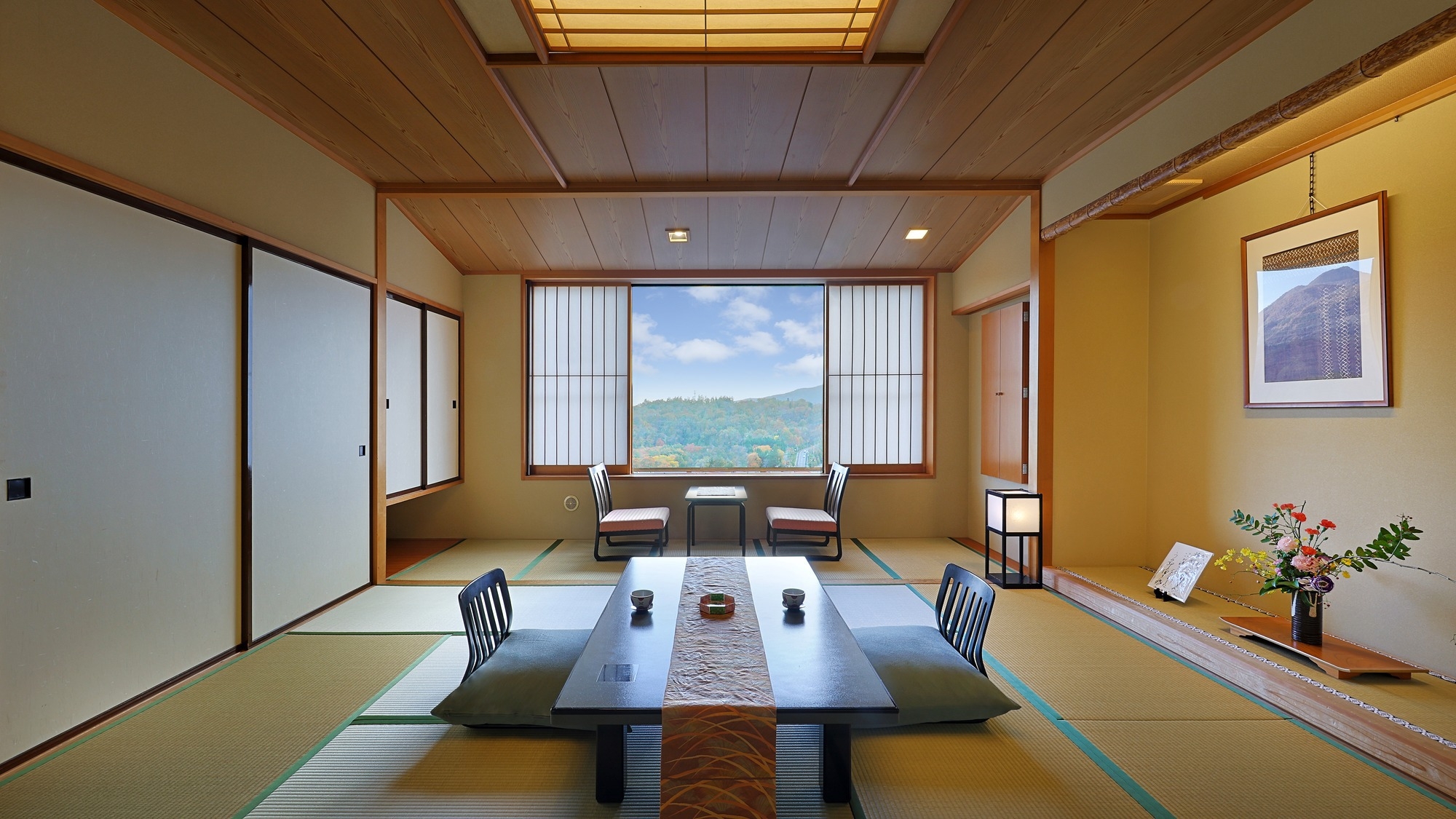 異なる間取りの和室は、それぞれに独自の魅力を持ち、どのお部屋も蔵王の壮大な景色を堪能することができます。