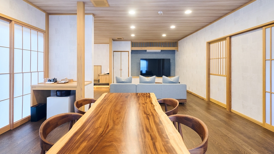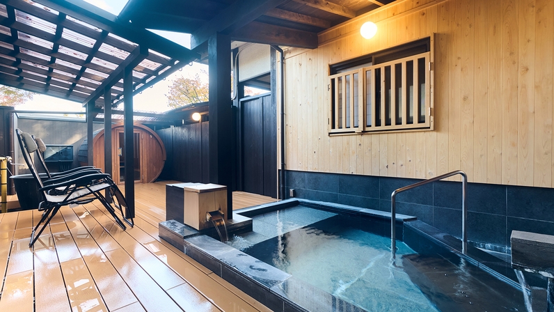 2024年12月リニューアル。専用庭とバルコニーを有する約90平米 みな和の最上級客室。露天風呂・内湯、バレル・水風呂と贅沢な温浴設備!※3名様以上は簡易ベッド