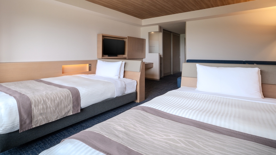 コネクティングフォースはツインルームを隣り同士で扉で繋げるお部屋です。 シングルベッド4台とソファベッド1台で6名様までご利用いただけます。