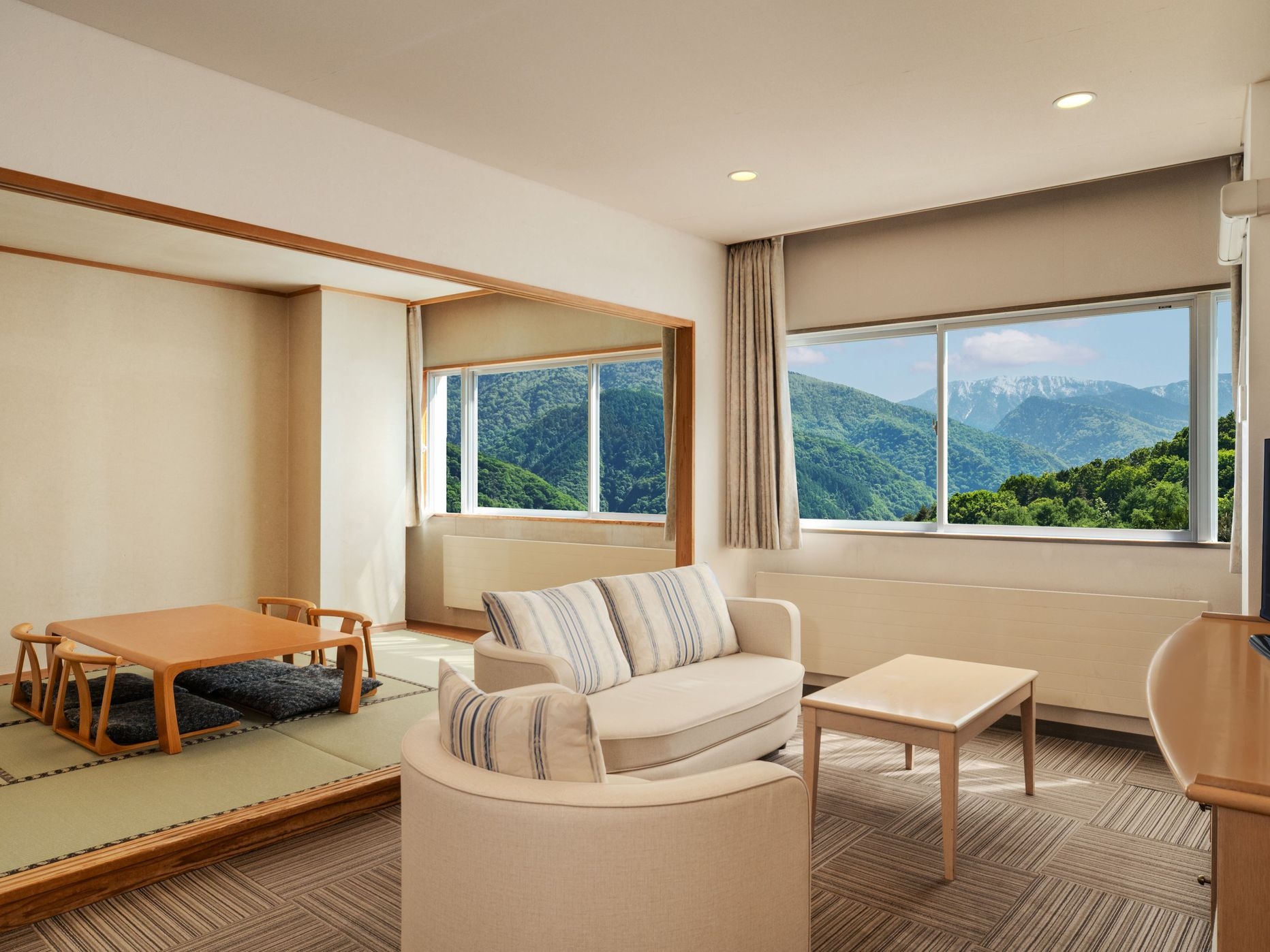 1階フロア(低層階)・禁煙室/リビング・和室・洋室/キッチンが無くゆとりある間取りです■安曇野の自然を満喫■館内に温泉大浴場あり