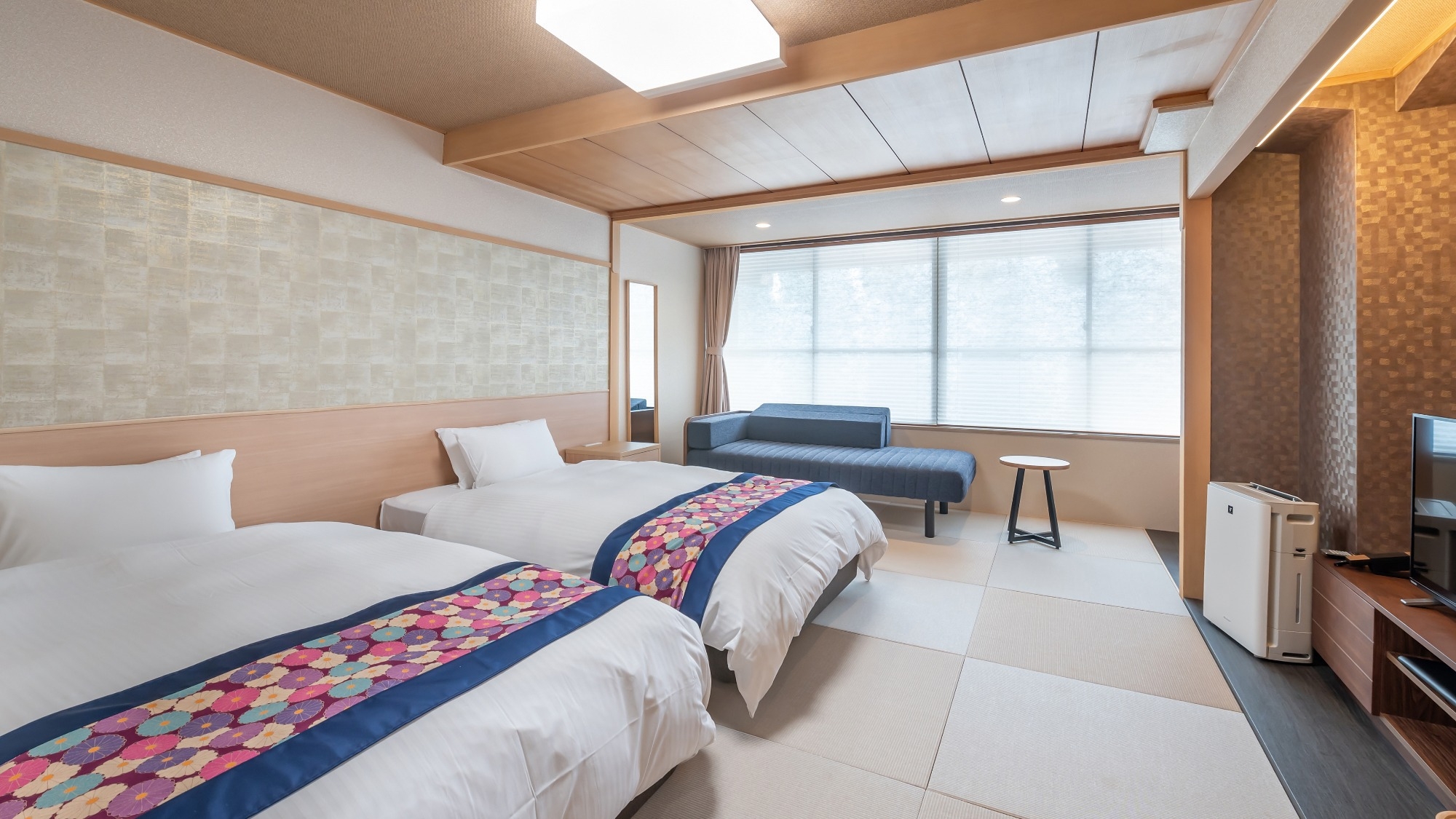 生まれ変わった、広いお部屋でおくつろぎください。