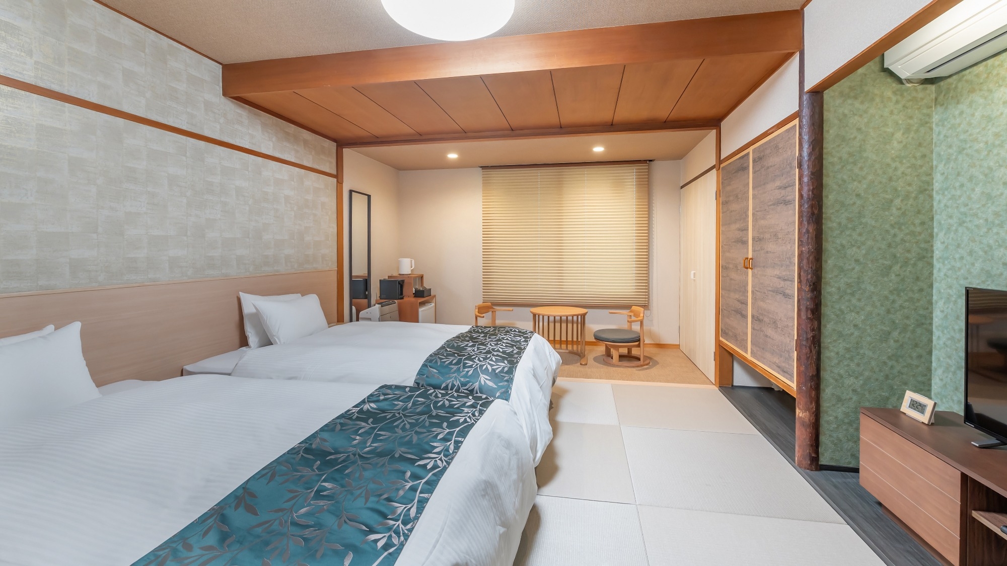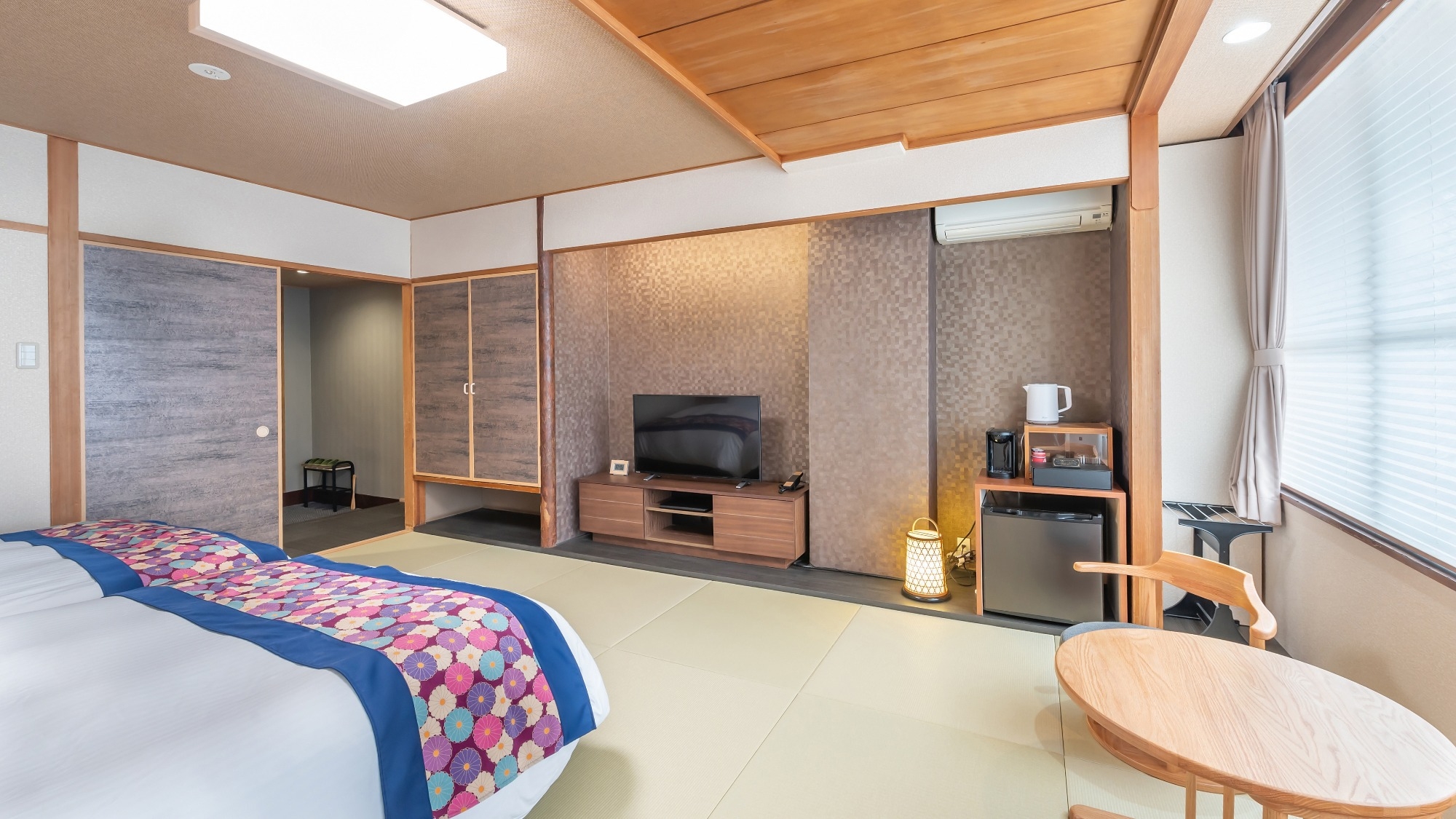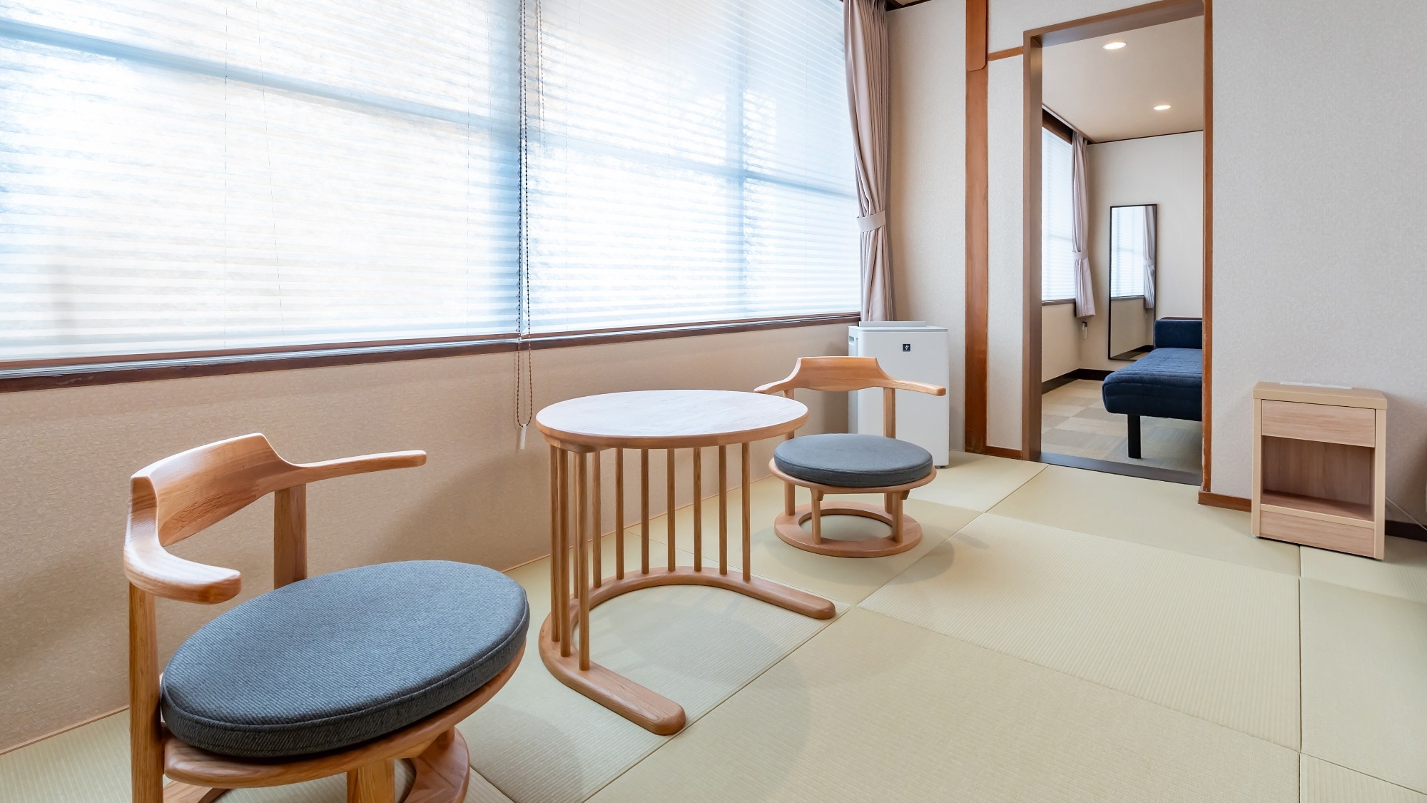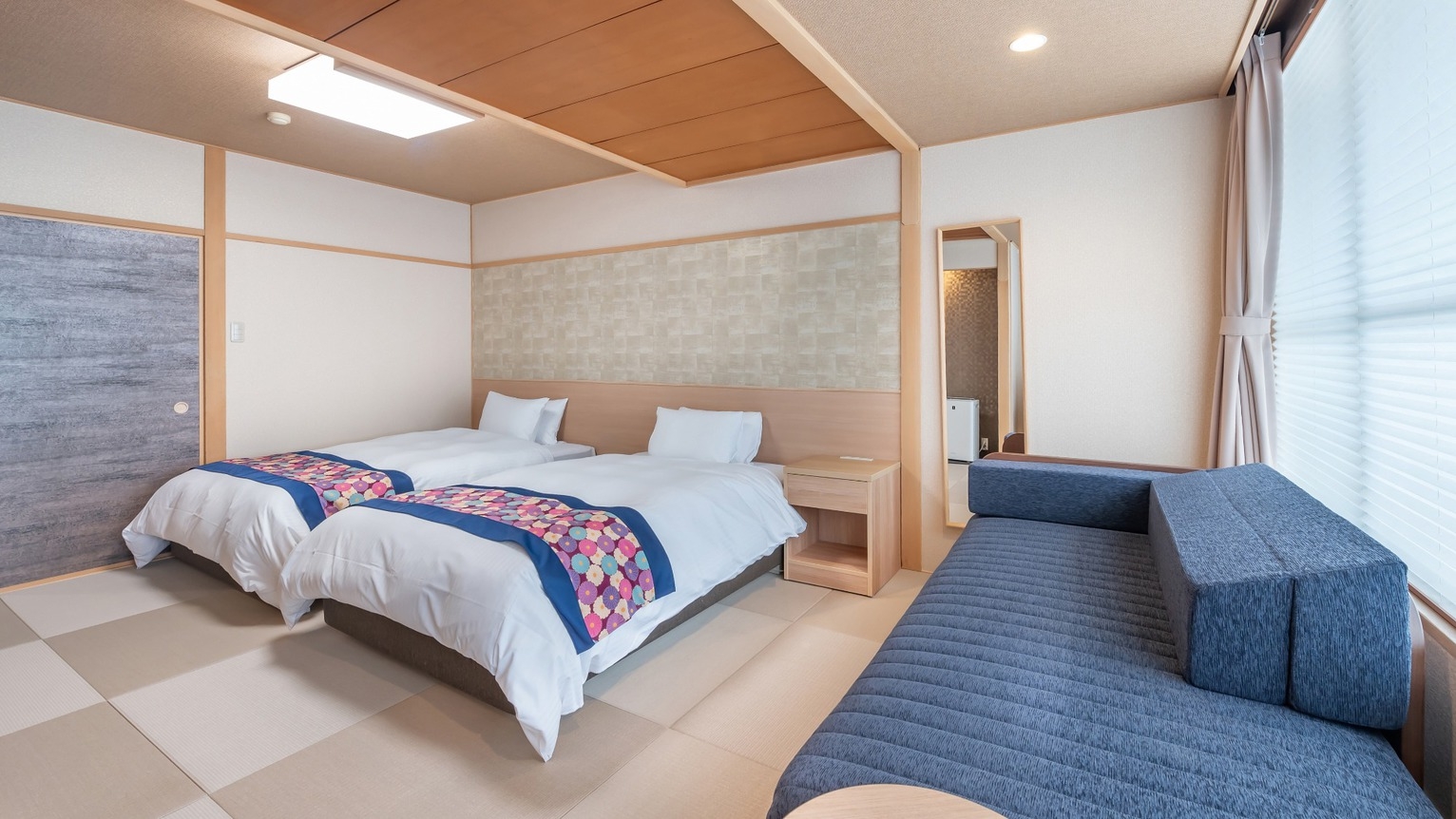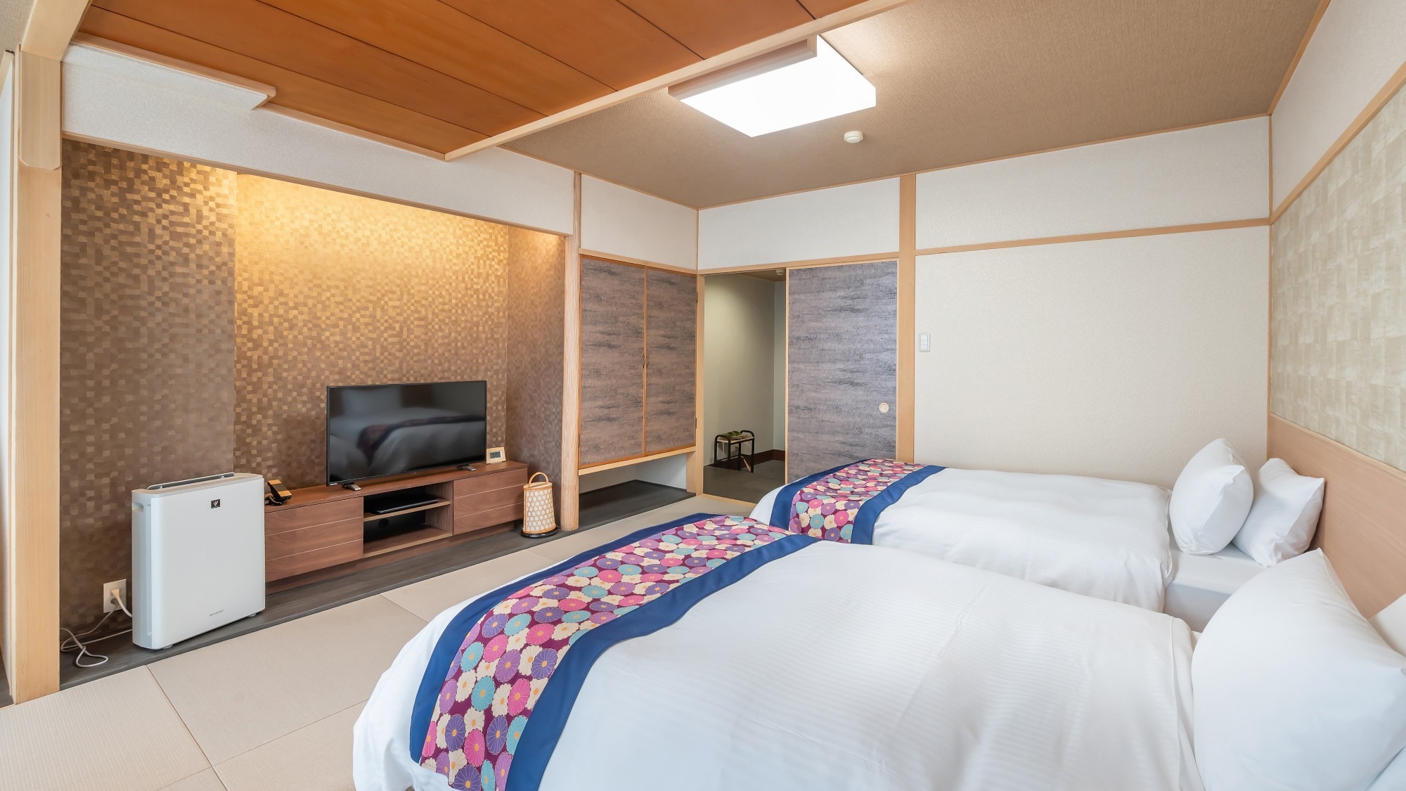 ツインベッドの部屋に続いて6畳の和室がございます。シャワーブースとトイレが別になっております。
