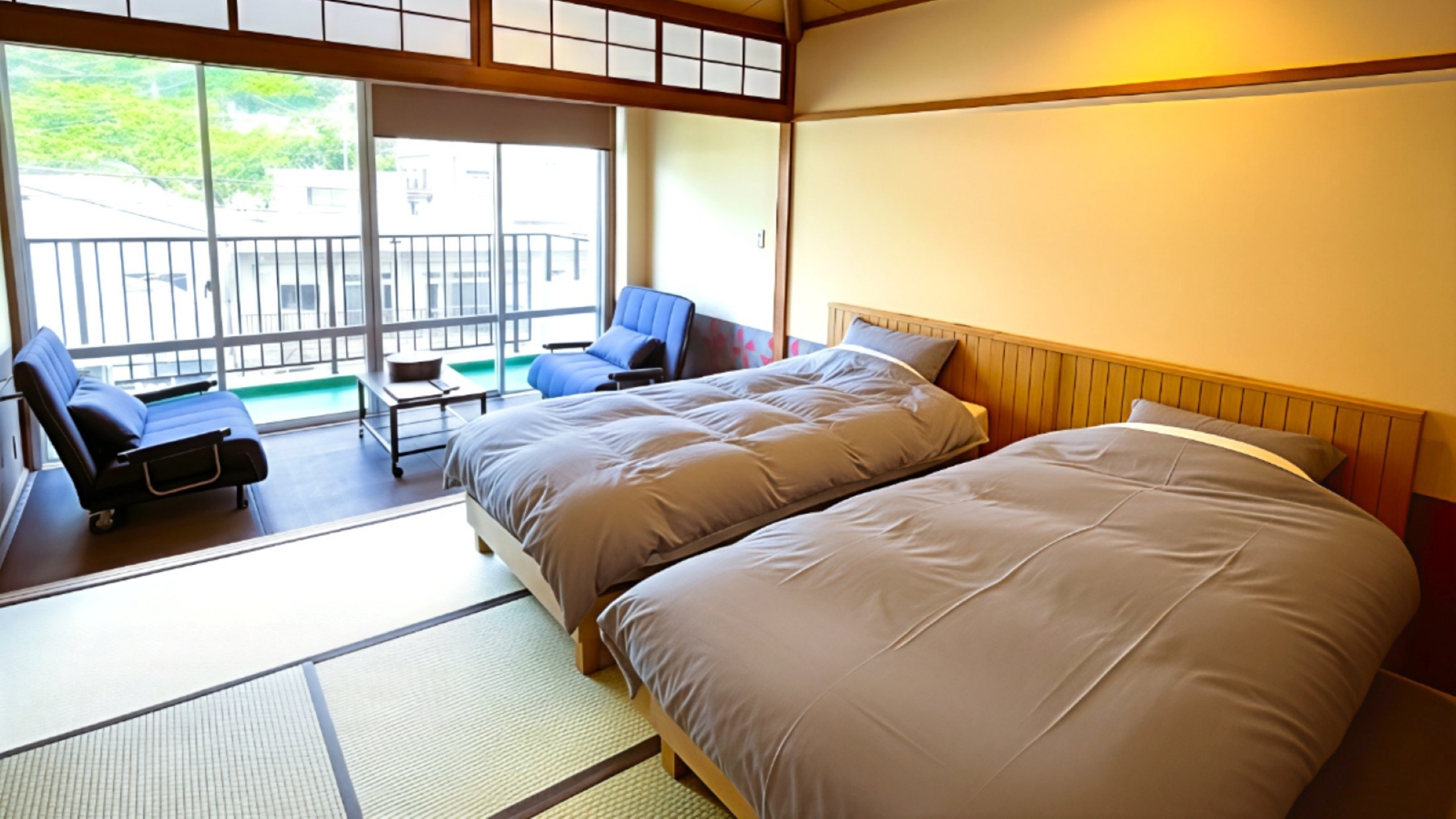 ※ワンちゃん受入不可◆川のせせらぎを聞きながら広縁でお茶を一杯◆客室露天風呂付※お部屋のお風呂は温泉ではございません◆畳にツインベッドを置いたお部屋です。