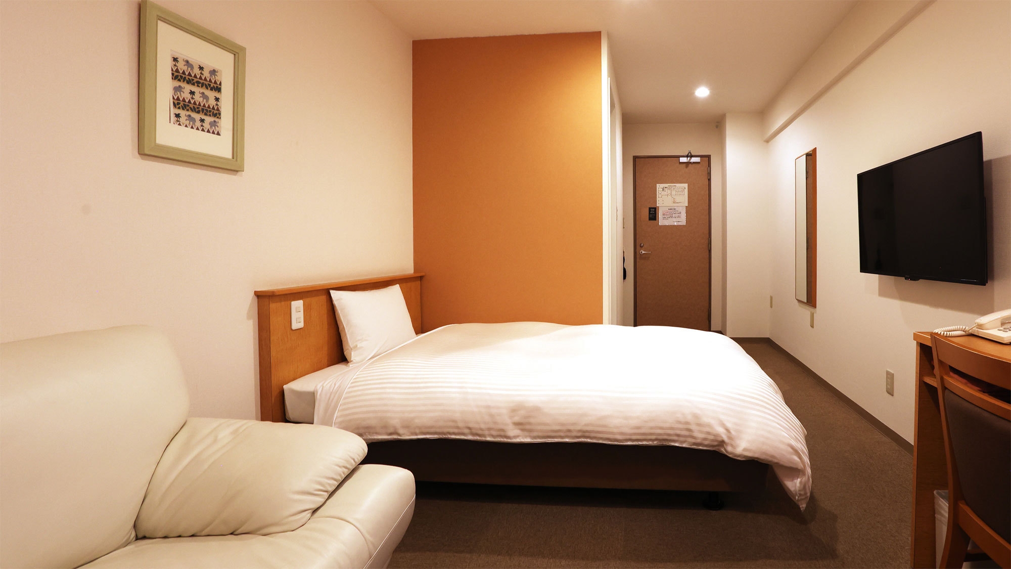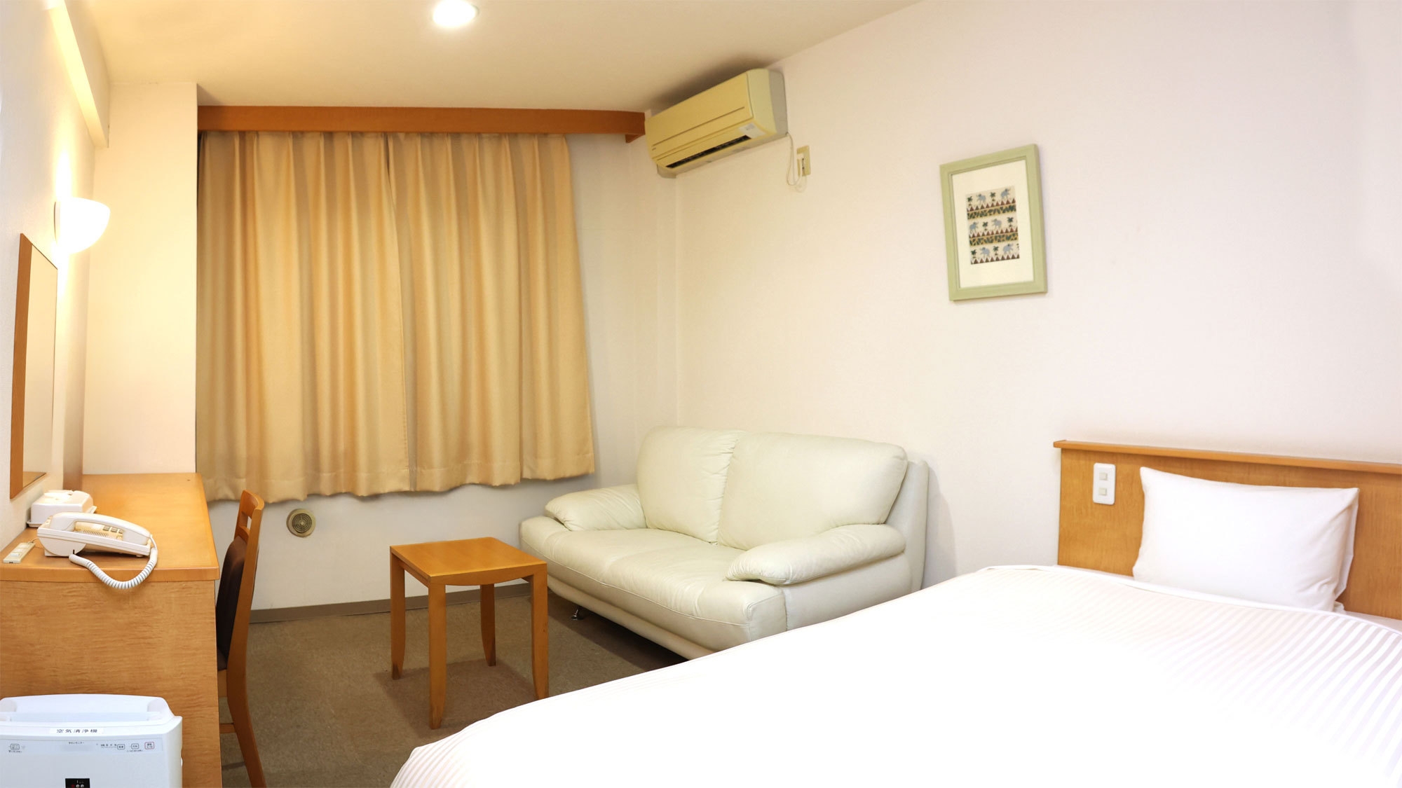 ベッドサイズ:140センチ/Wi-Fi/有線LAN/温水洗浄便座トイレ/液晶テレビ50V/冷蔵庫/個別エアコン/ドライヤー/空気清浄機