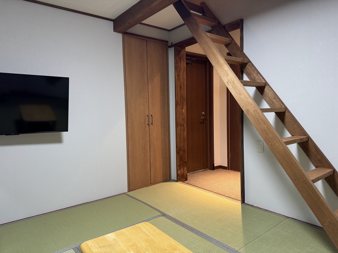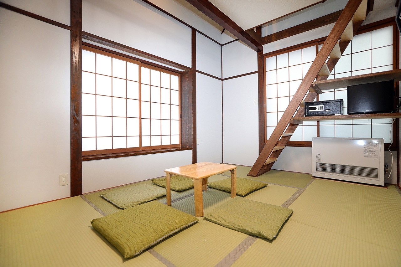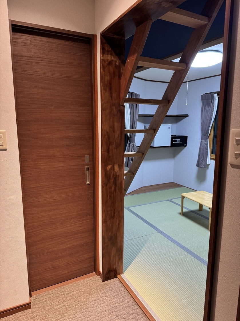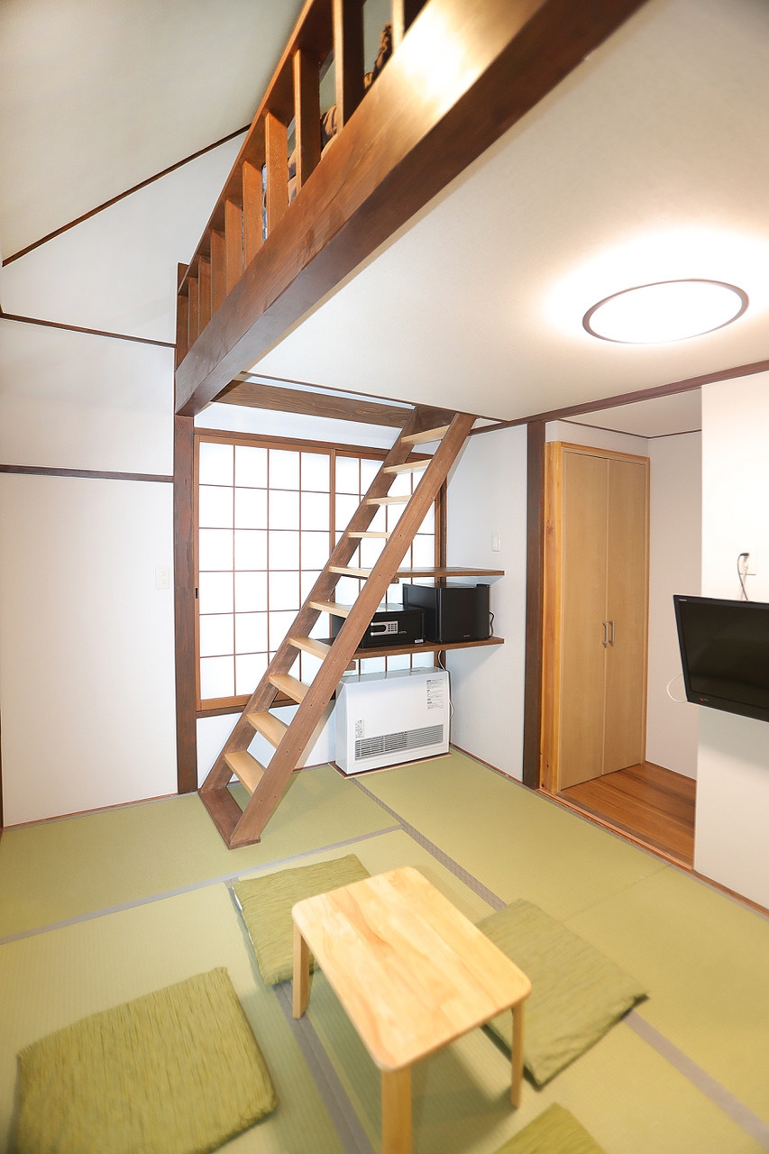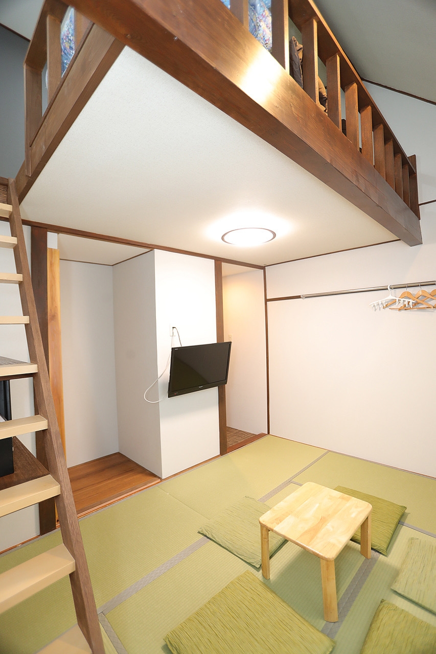 ダブルベッド(140cm-198cm、ロフト設置)1台、バス・トイレ・洗面台付き、室内禁煙(喫煙は館内の喫煙所にて可能)、Wi-Fi利用可能。