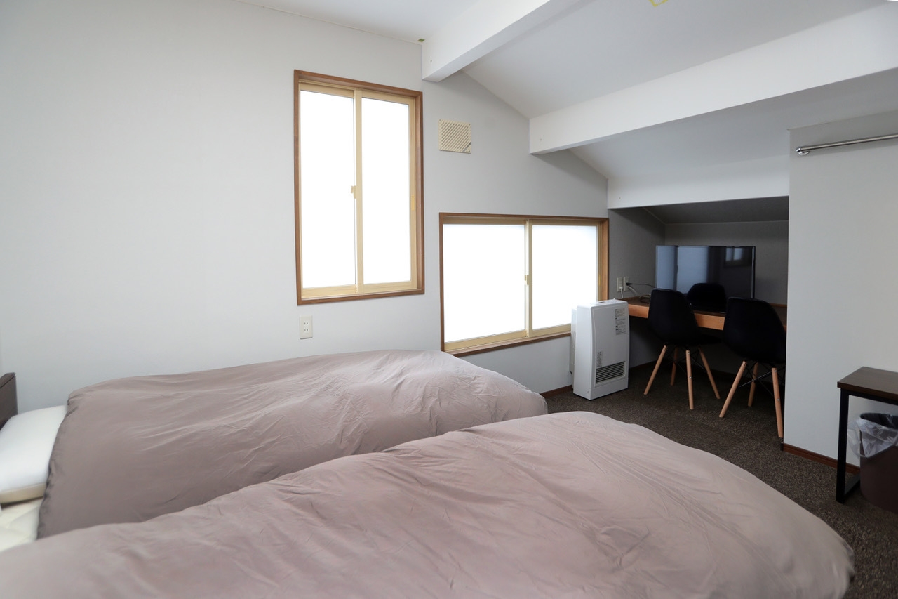セミシングルベッド(85cm-200cm)2台、トイレ・洗面台付き、室内禁煙(喫煙は館内の喫煙所にて可能)、Wi-Fi利用可能。