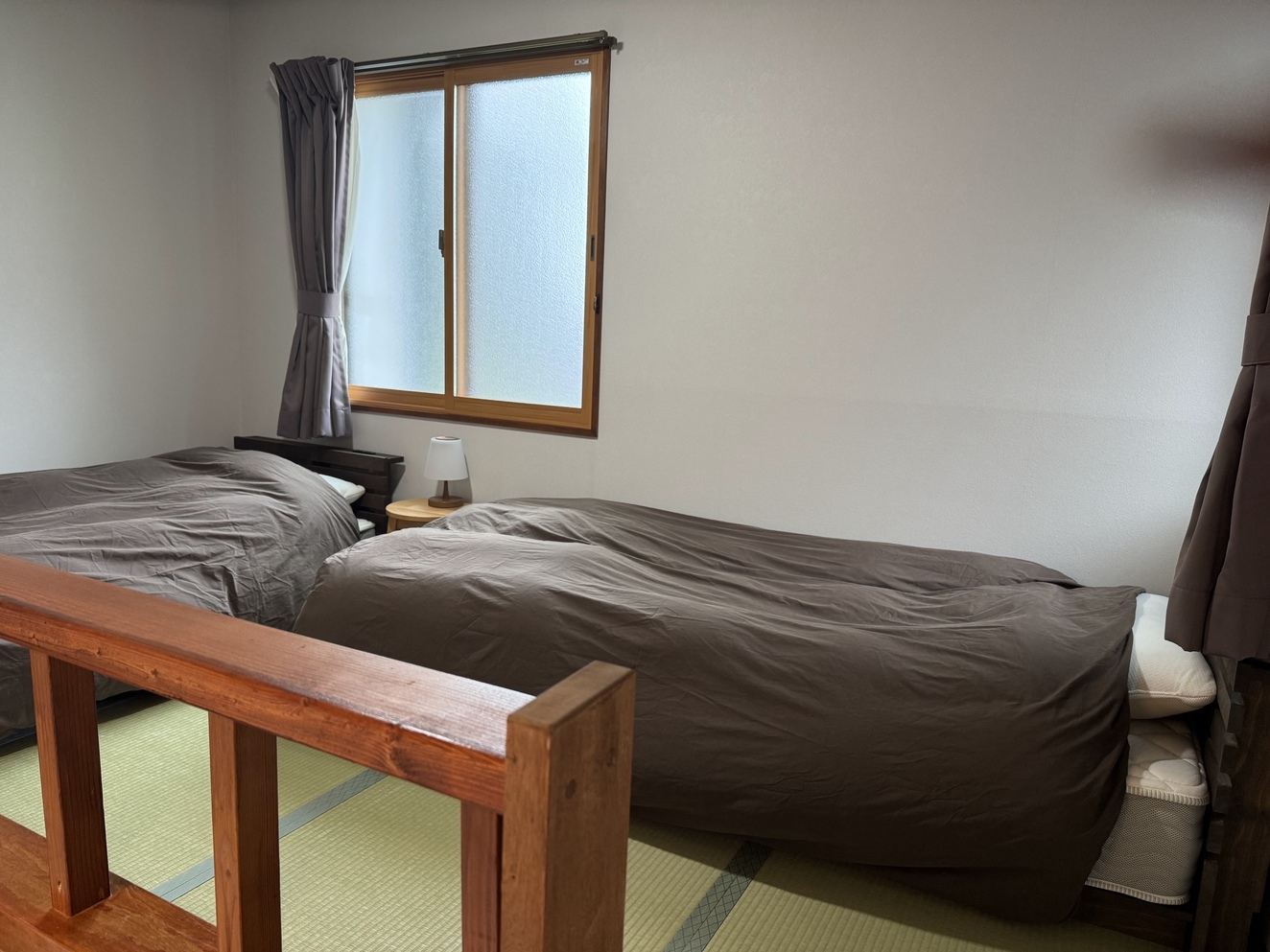 セミシングルベッド(80cm-198cm、ロフト設置)2台、トイレ・洗面台付き、室内禁煙(喫煙は館内の喫煙所にて可能)、Wi-Fi利用可能。