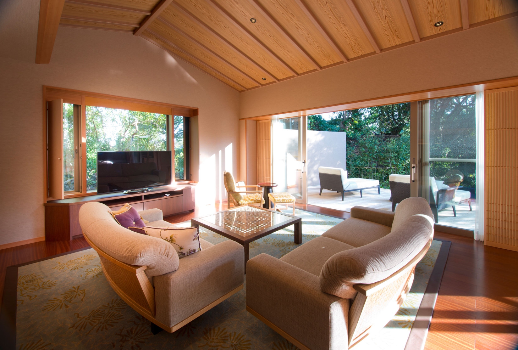 和と洋が融合されたプライベート空間【ヴィラ】■お部屋について■露天風呂あり・お休みはベッドにて・コーヒーメーカー完備・デッキスペースのみ喫煙可能