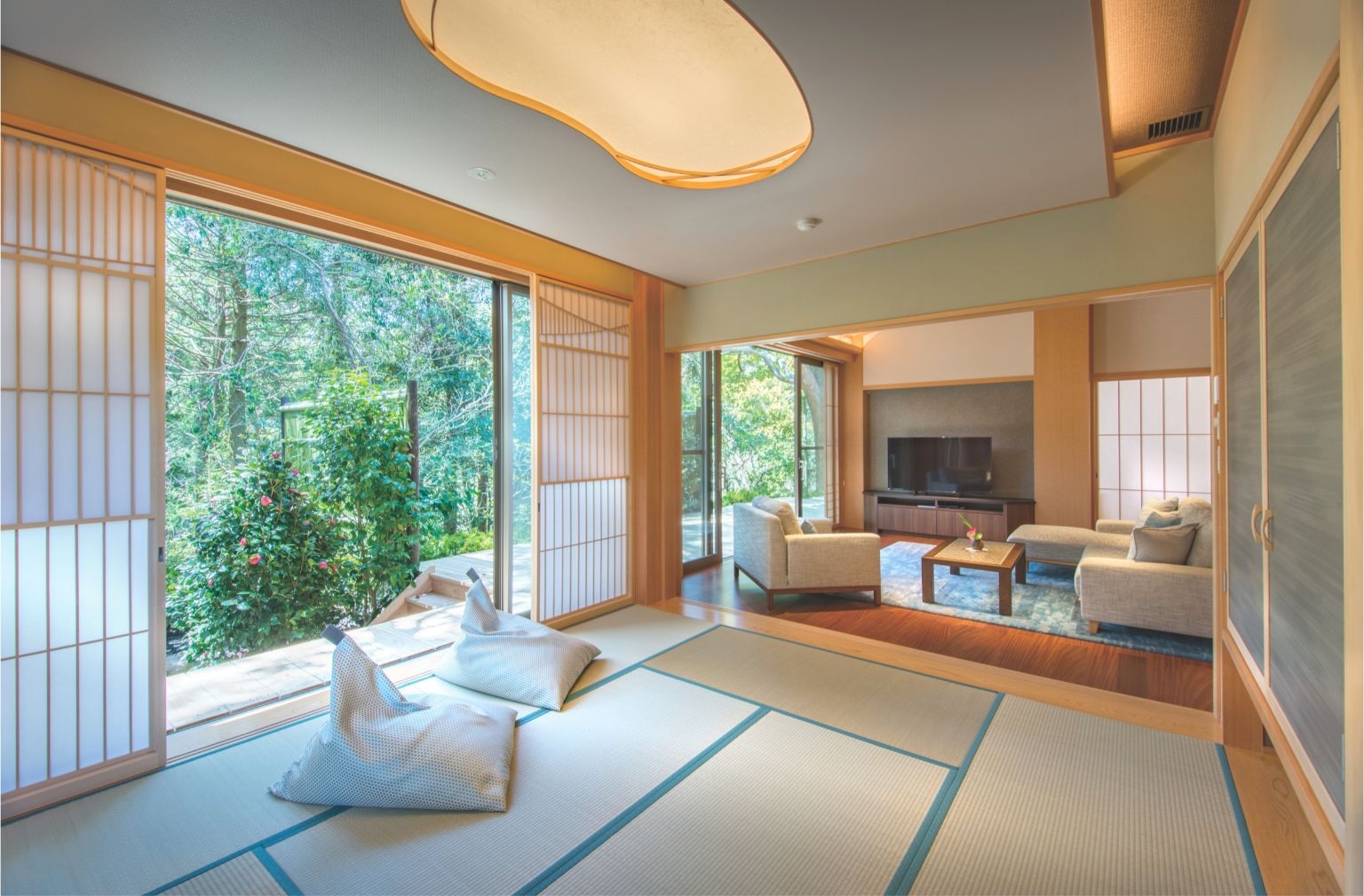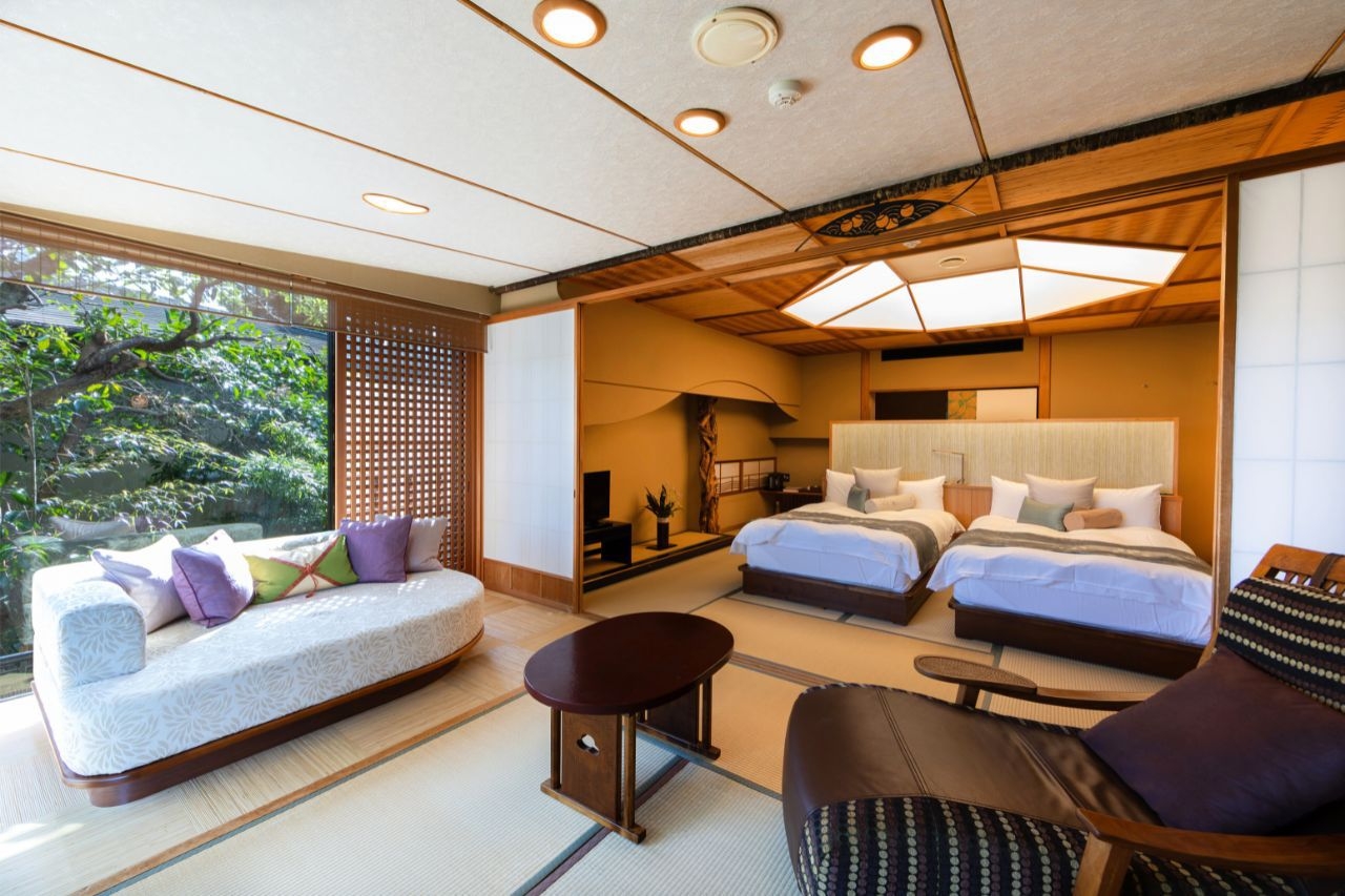 静寂の離れ※2025年2月から改修工事を行っております。本館との通路はなくなり、ヴィラタイプのお部屋と同様にお車にてお迎えにあがります。