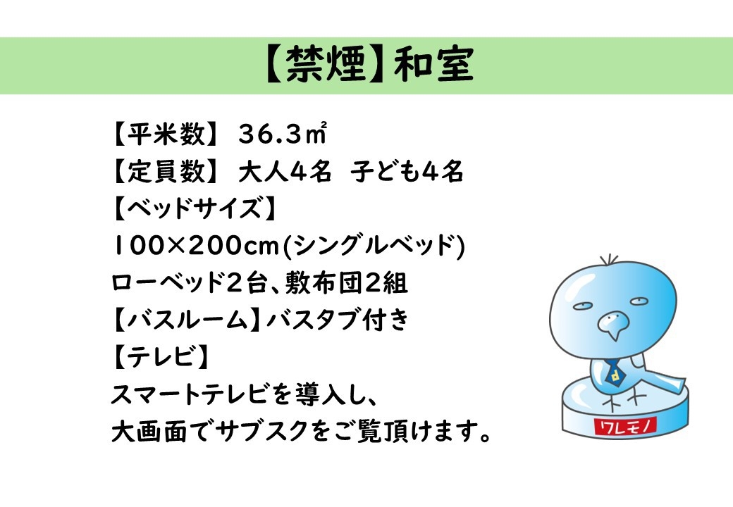 予約サイトのシステム上、添寝人数が規定以上入力できる場合がございますが、添寝可能人数は当館規約に基づき上記とさせていただきます。条件を超えた人数でのご予約は、別にお部屋をお取りいただく事となります。
