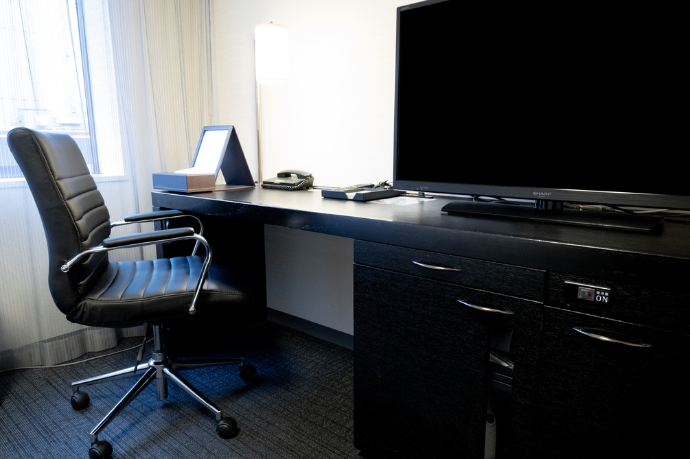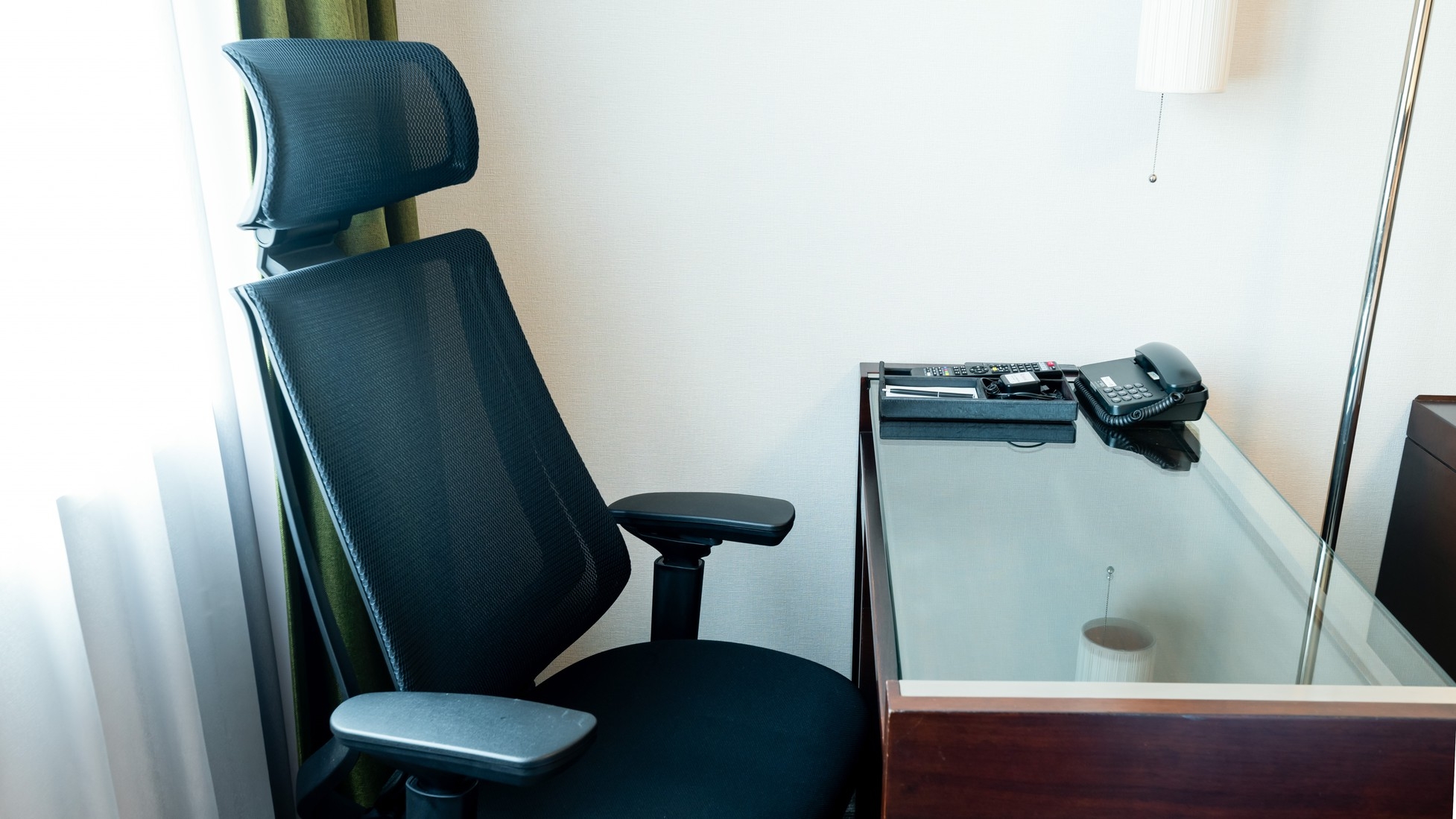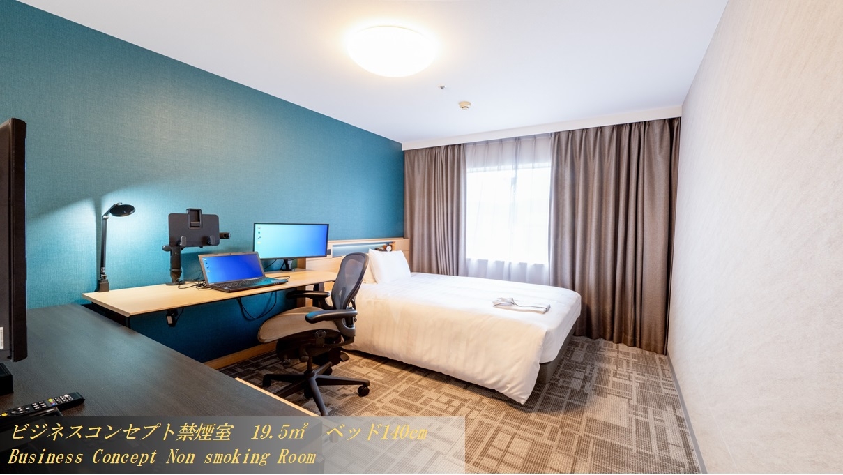 ◇禁煙ルーム◇2名利用時には1台のベッド(140cm幅)でのご利用◇ビジネス特化◇昇降式デスク◇外部モニター◇ハーマンミラー社のアーロンチェア