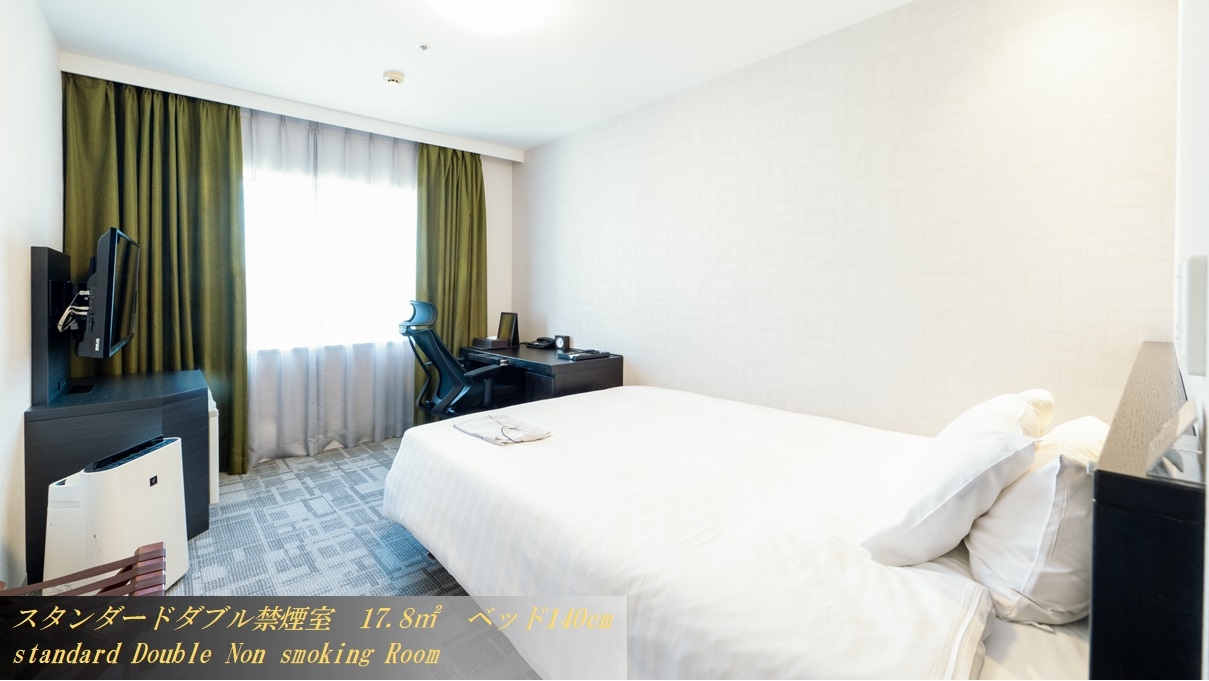◇禁煙ルーム◇140cm幅ダブルベッド◇40型液晶TV◇加湿機能付空気清浄機◇無線LAN接続Wi-Fi無料◇