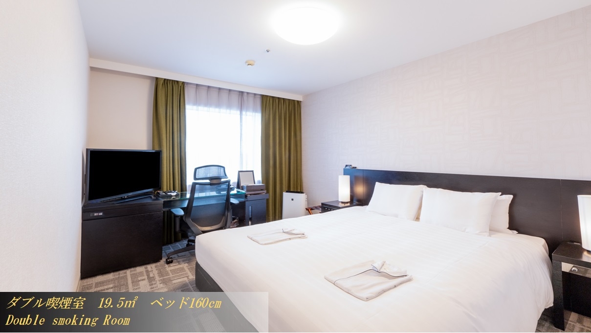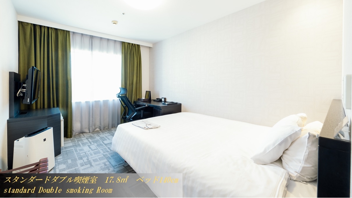 ◆喫煙ルーム◆140cm幅ダブルベッド◆40型液晶TV◆加湿機能付空気清浄機◆無線LAN接続Wi-Fi無料◆