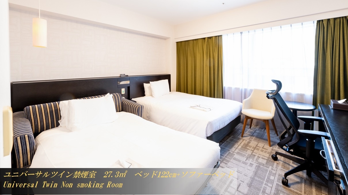 ◆27平米禁煙ルーム◆120cm幅ベッド+ソファーベッド◆40型液晶TV◆無線LAN接続Wi-Fi無料◆加湿機能付空気清浄機