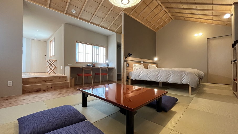 天然温泉かけ流しの大浴場付の和洋室。フルキッチン、洗濯乾燥機あり