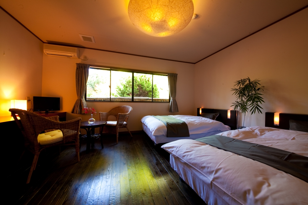 暖色の照明で落ち着いた雰囲気です。 (2名部屋)ツイン [アメニティ] 『バス無し』