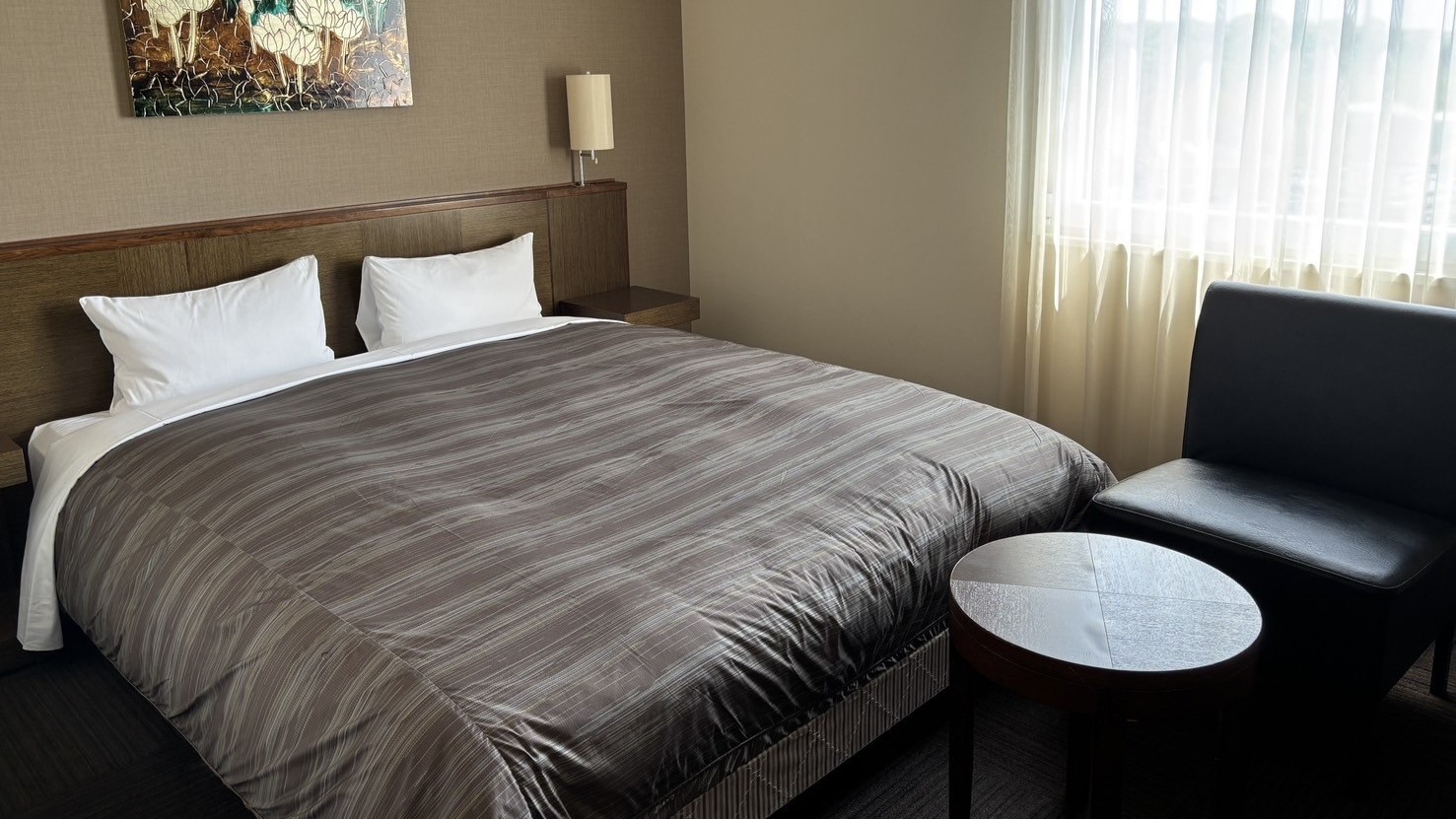 横幅1,400サイズの広々ベッド♪朝食バイキング無料サービス!