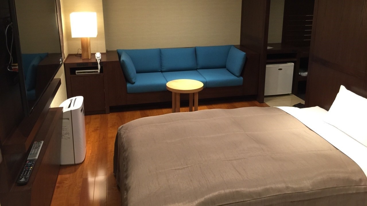 ◇11時チェックアウト◇サータ社製ダブルベッド 幅150cm・加湿空気清浄機・無料Wi-Fi・40型液晶テレビ完備!