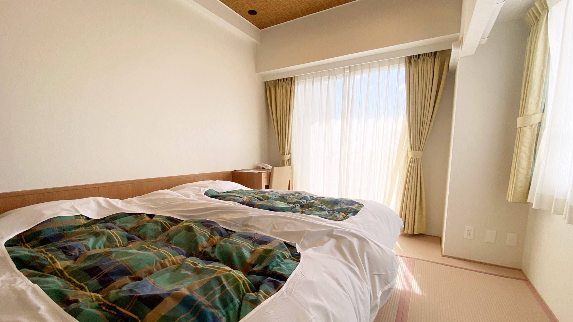 バス・トイレありの和室12〜15畳のお部屋です。 足を延ばしてごろ〜んとお寛ぎいただけます。Wi-Fi完備