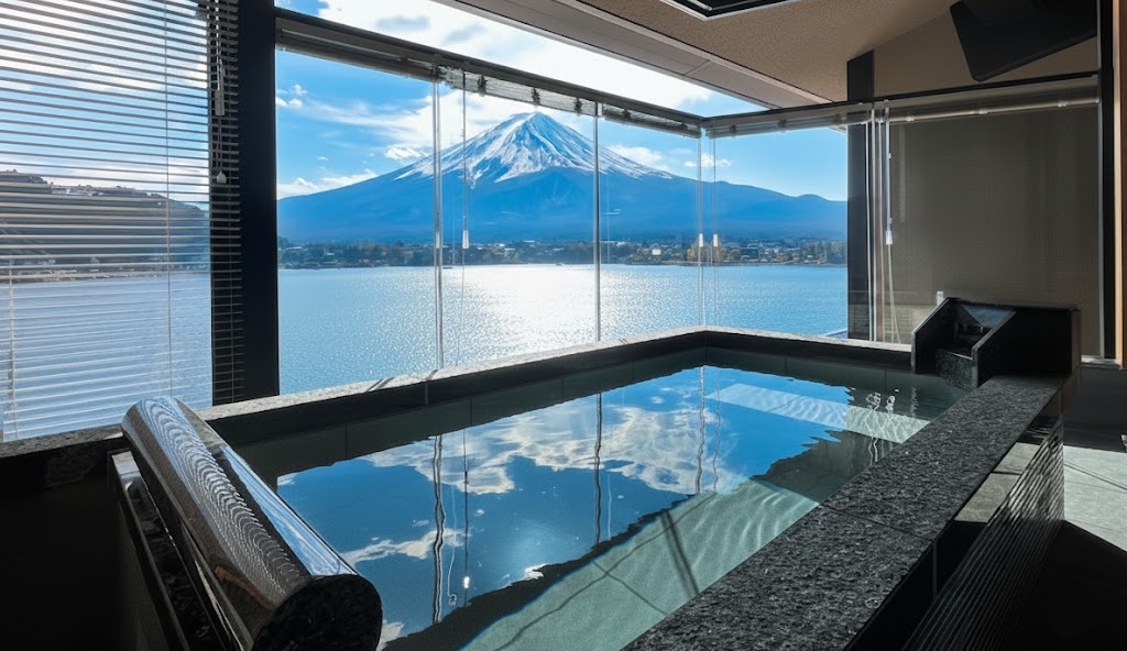 富士山を眺めながら温泉に身をゆだね、湯上がりにはラウンジでご家族との穏やかなひとときを。