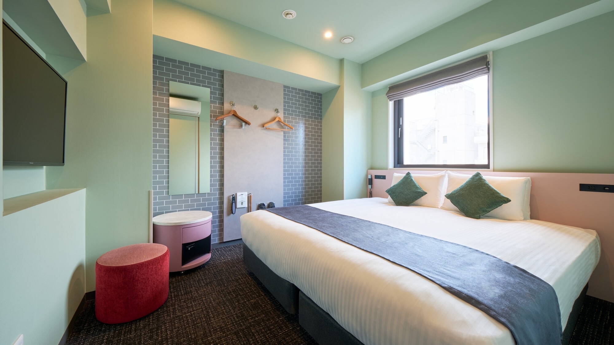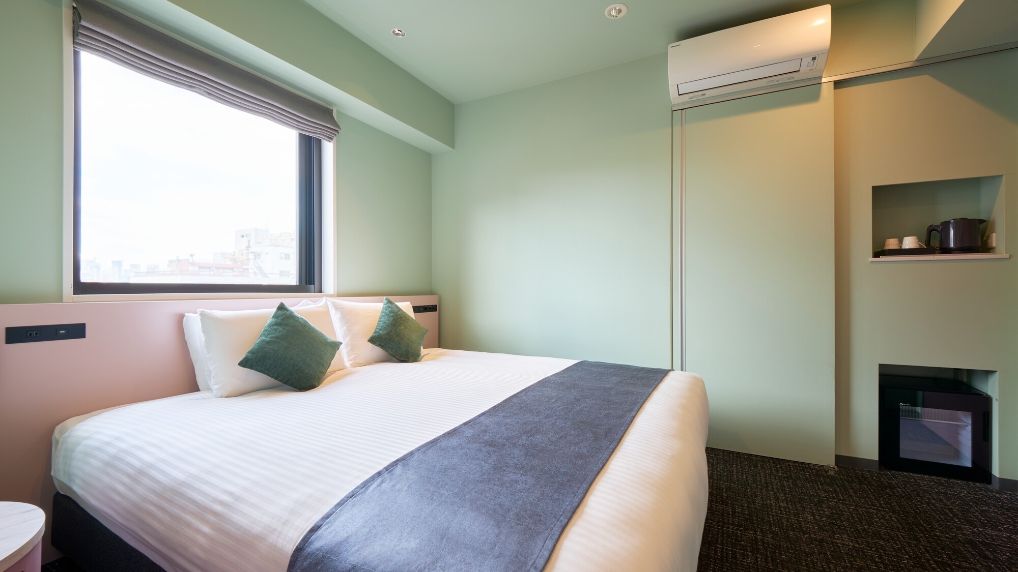 2022年リニューアル|140×200ベッド1台|個別空調|無料Wi-Fi|枕元コンセント|加湿機能付空気清浄機|地上1階|